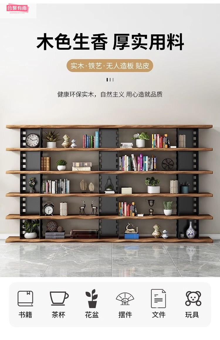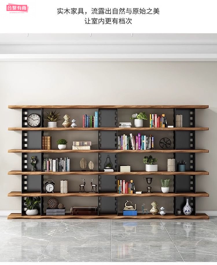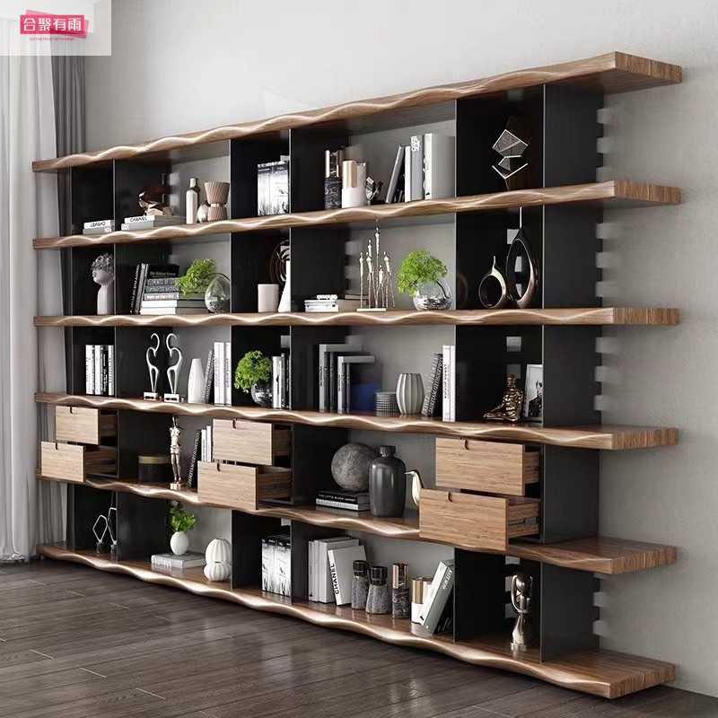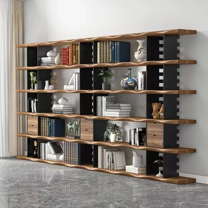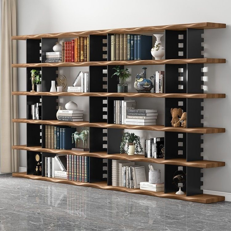 미국식 원목 벽걸이 책장, 사무실 선반, 바닥에서 천장까지 이어지는 칸막이 수납, 다층 책장, 거실