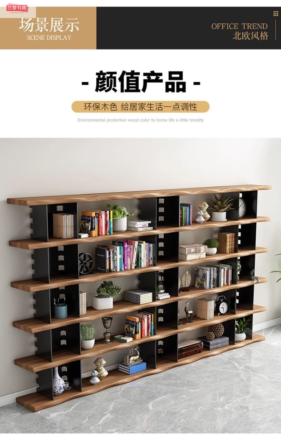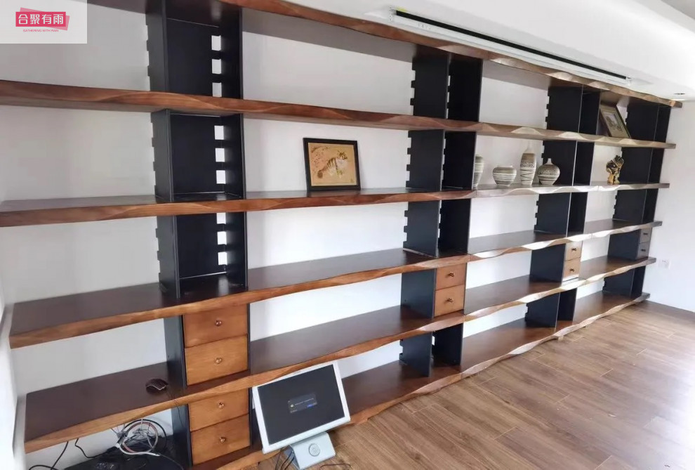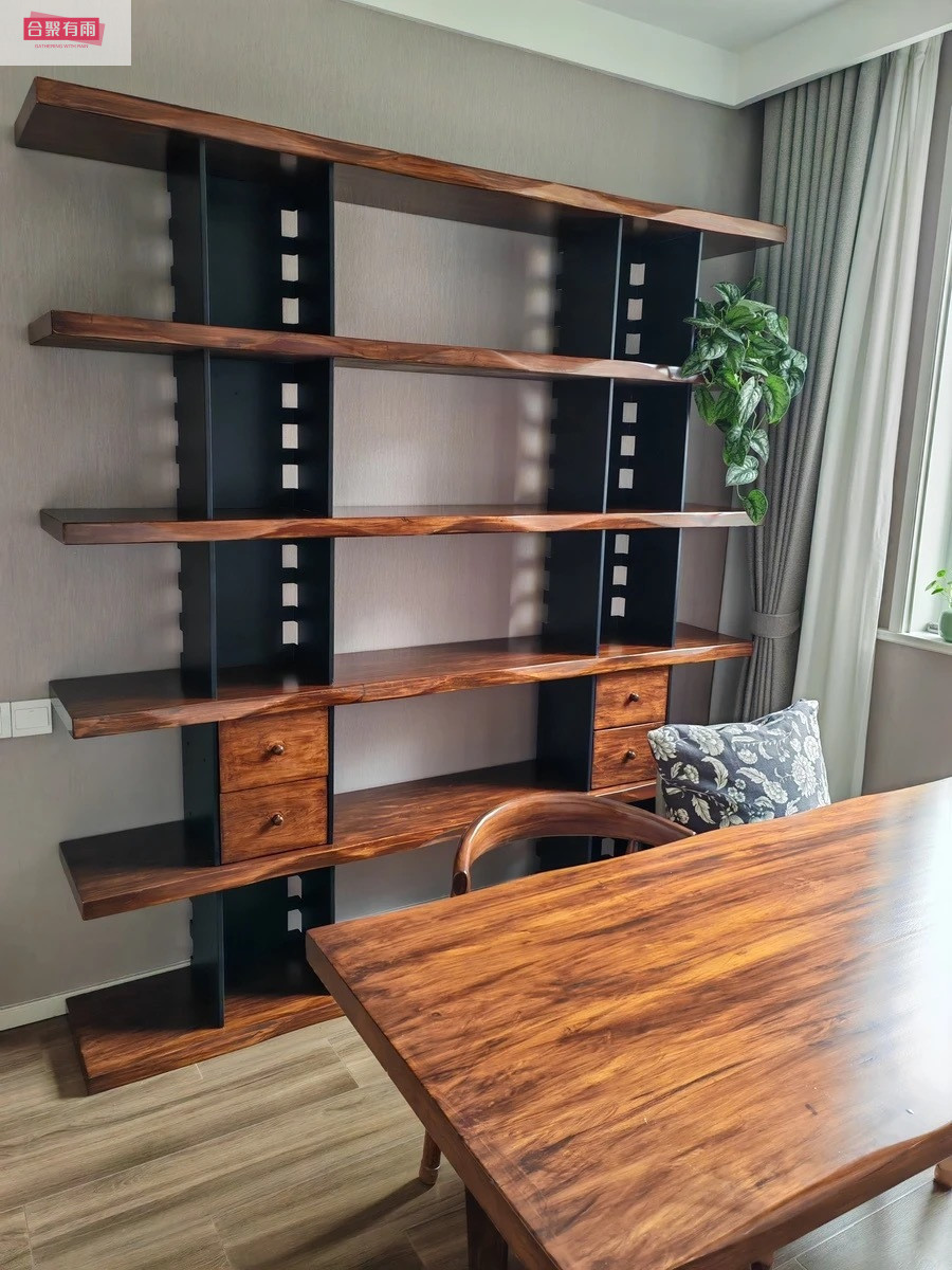 미국식 원목 벽걸이 책장, 사무실 선반, 바닥에서 천장까지 이어지는 칸막이 수납, 다층 책장, 거실
