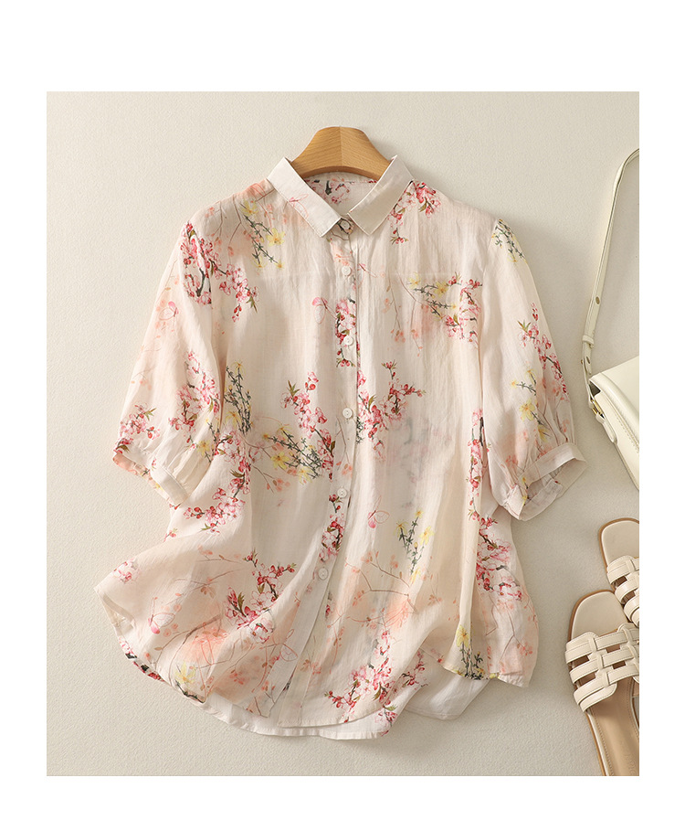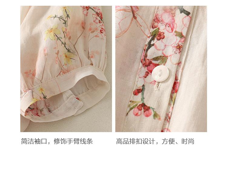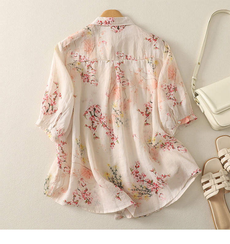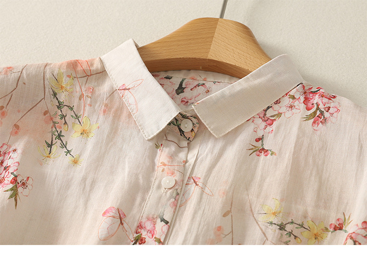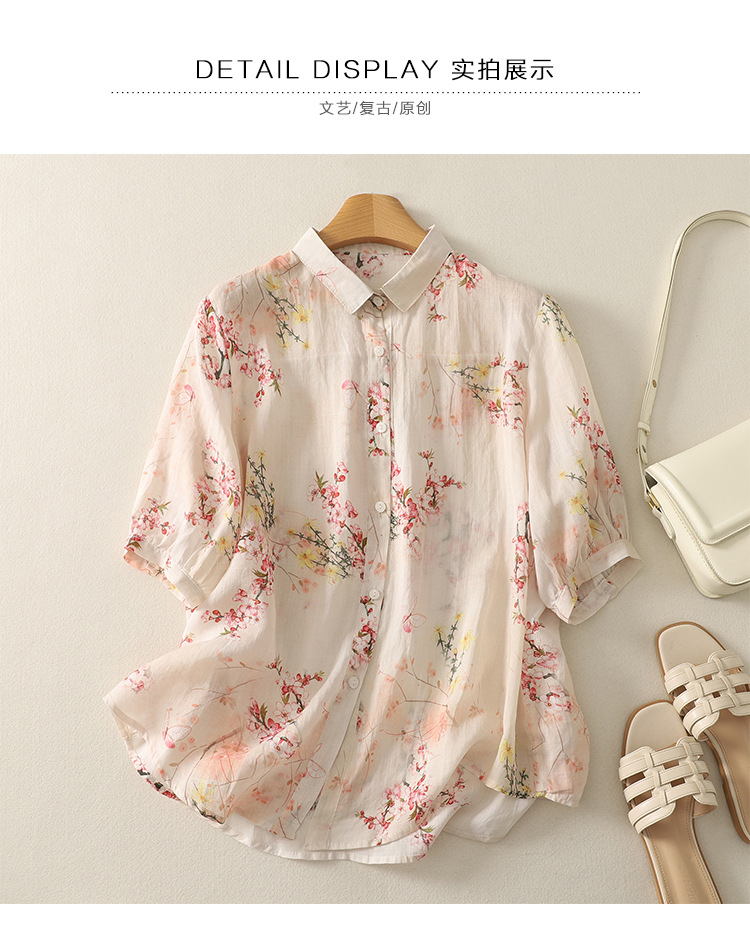 리얼 샷 여름 라미 톱 셔츠 여성용 디지털 인쇄 하이 퀄리티 반팔 셔츠 여성