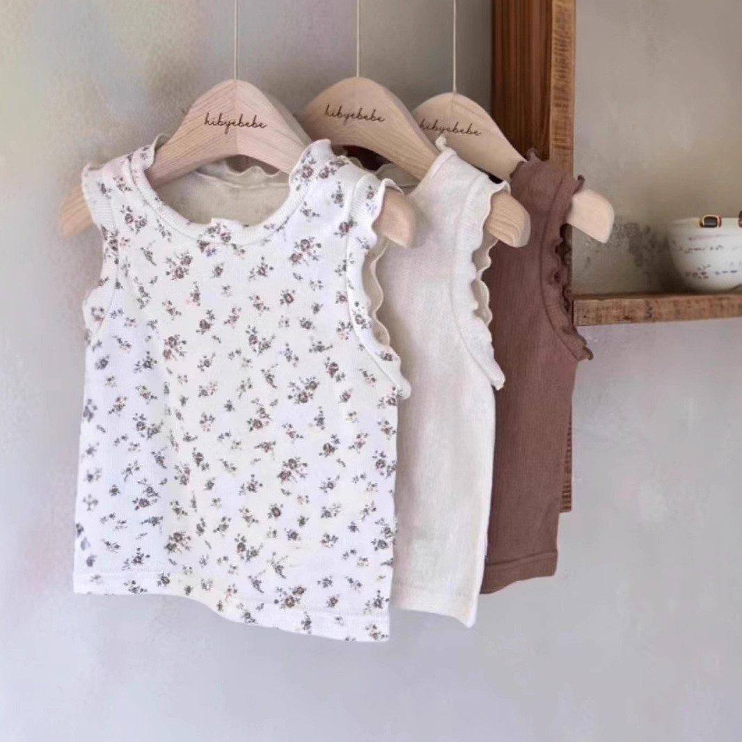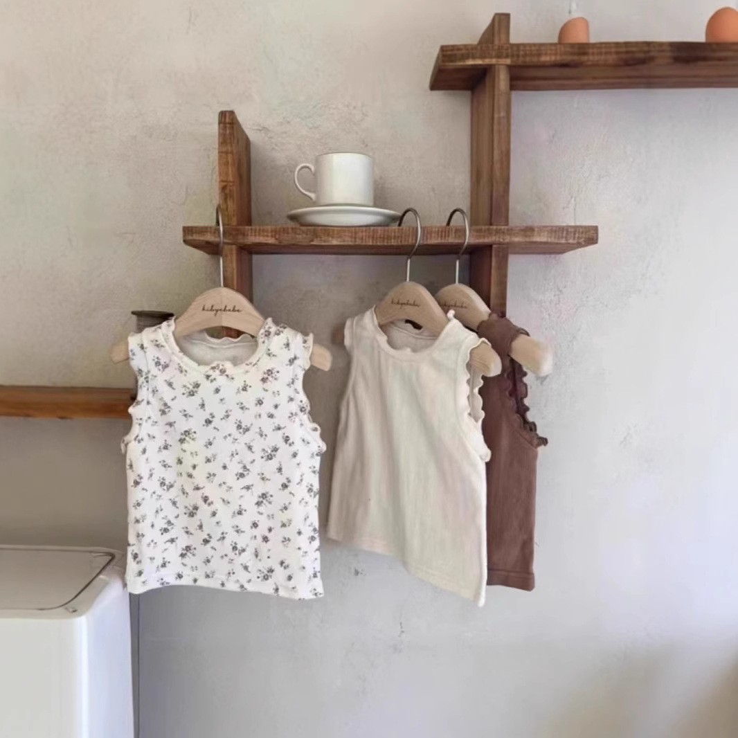 여름 아기 소년과 아이 얇은 코튼 레이스 꽃 단색 티셔츠 아기 조끼스토어 가기