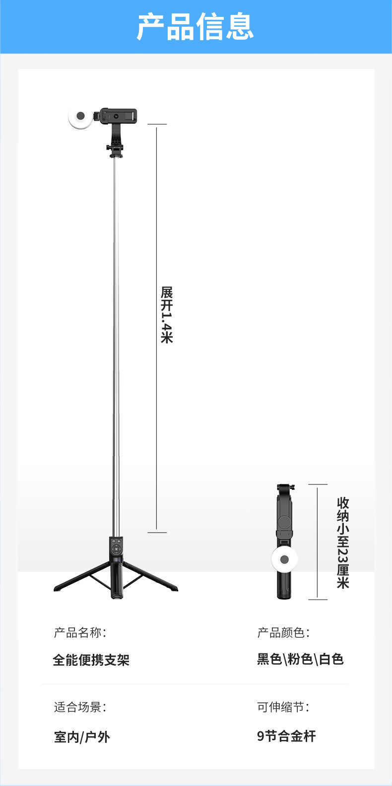 • Z14Pro 화이트 [셀카봉 1.4m개 + Douyin 리모컨 충전 + 안정적인 삼각대 + 원형 조명 1개]