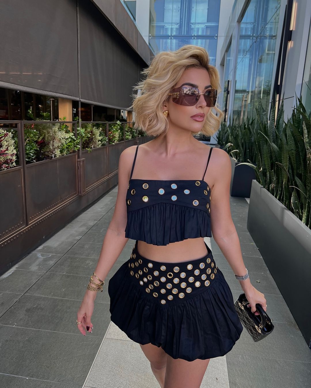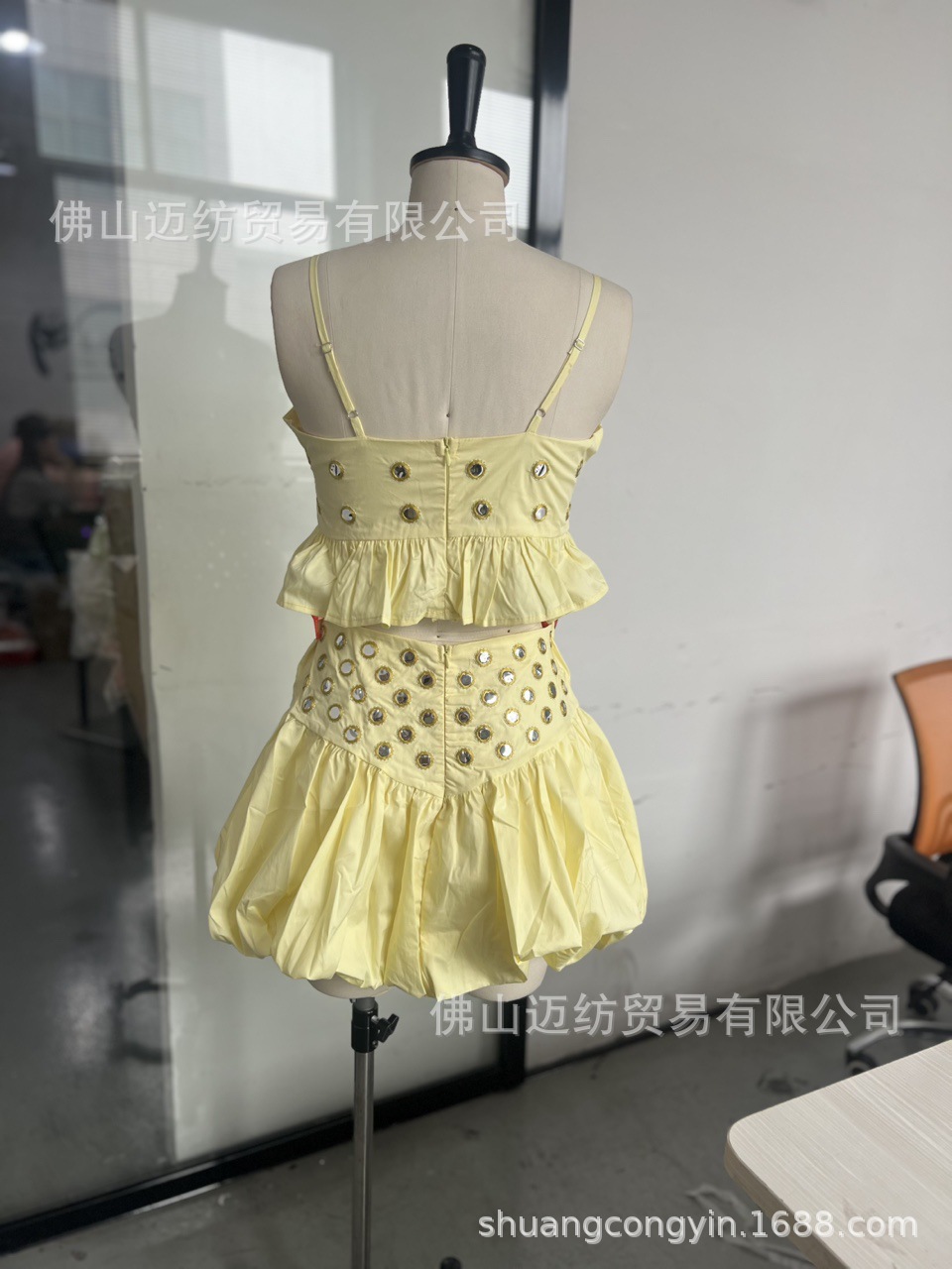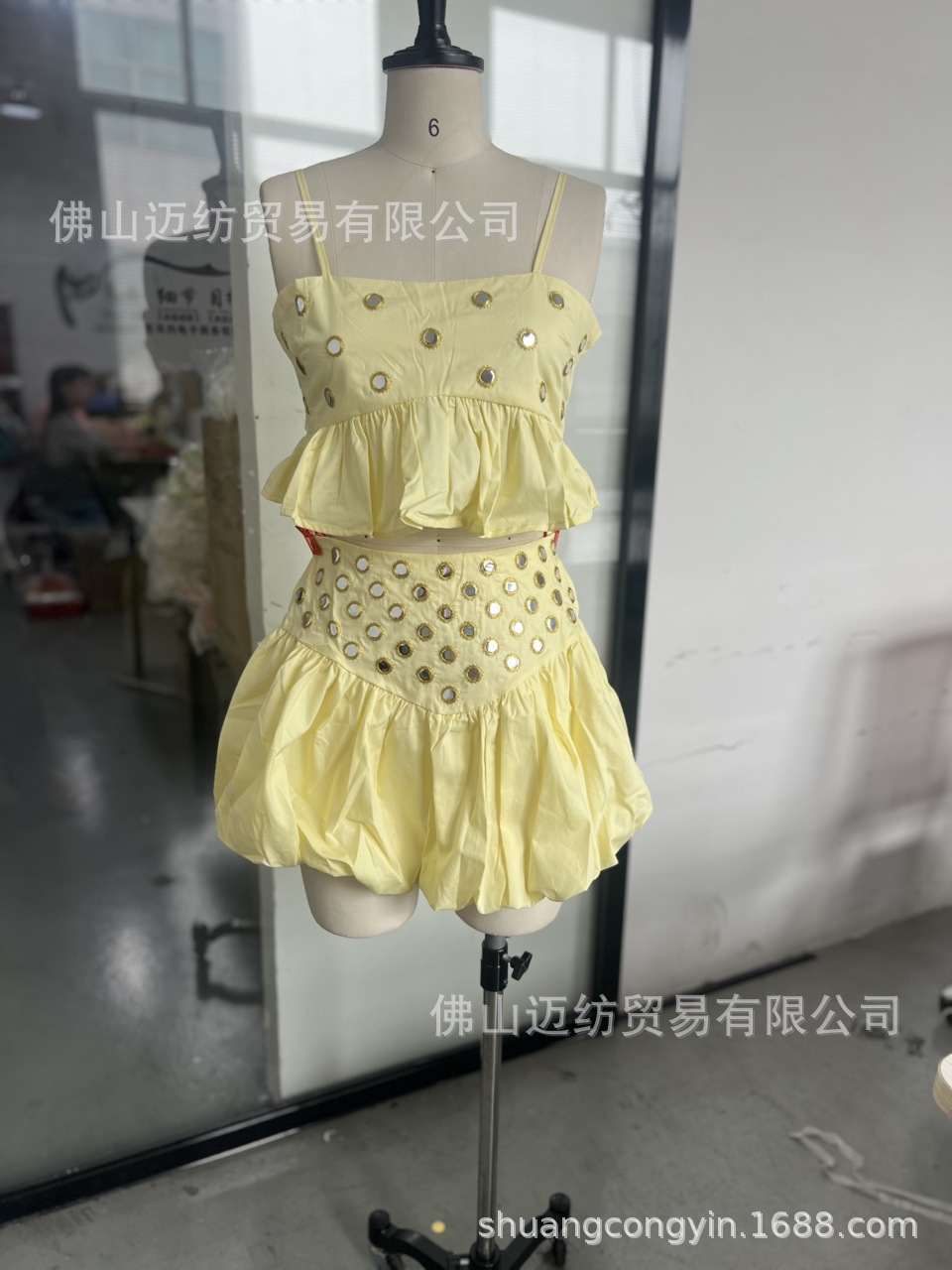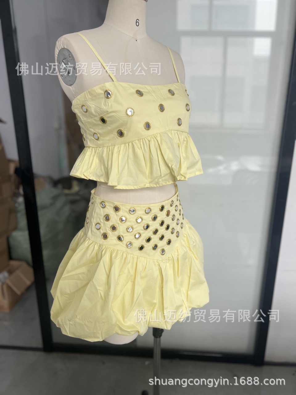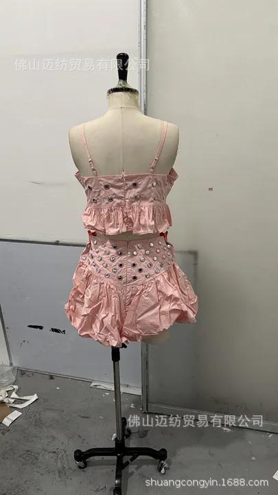유럽과 미국 국경 2025 봄과 여름 여성 패션 캐주얼 세트 속이 빈 주름 장식 미니 조끼 스커트 세트스토어 가기