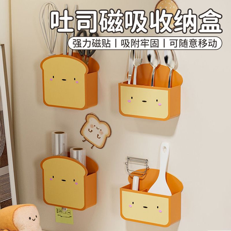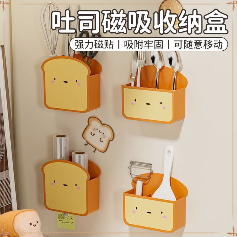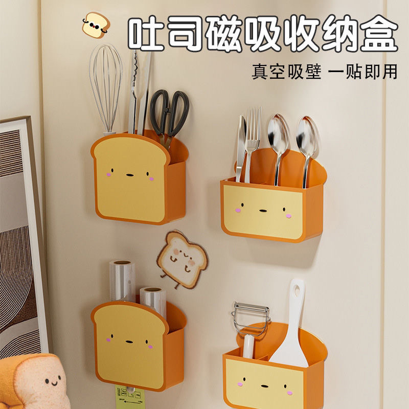 냉장고 자석 흡수 상자, 펀치 없는 가정용 벽걸이형 출입문 보관함, 창의적인 주방 접착 필름 보관함스토어 가기