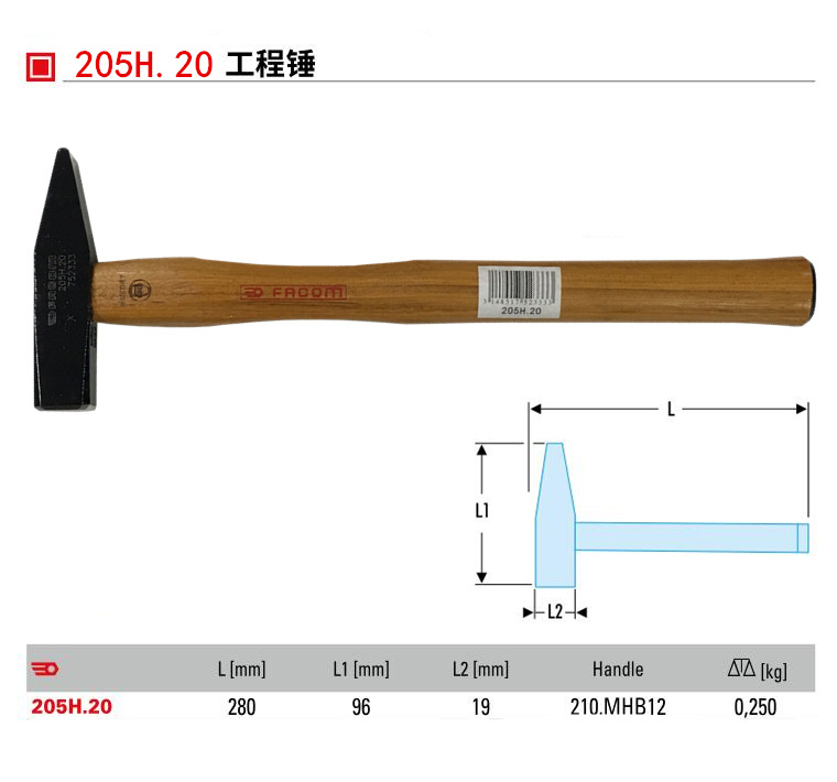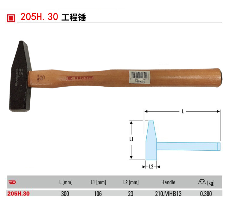 수입 프랑스 FACOM 도구 나무 손잡이 해머 사각 해머 DIN 엔지니어링 해머 205H.20/30/50
