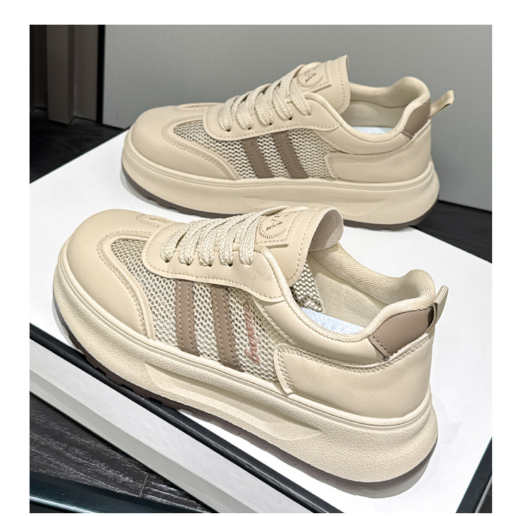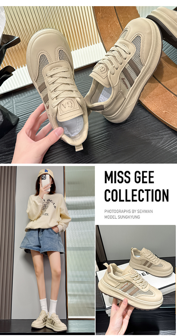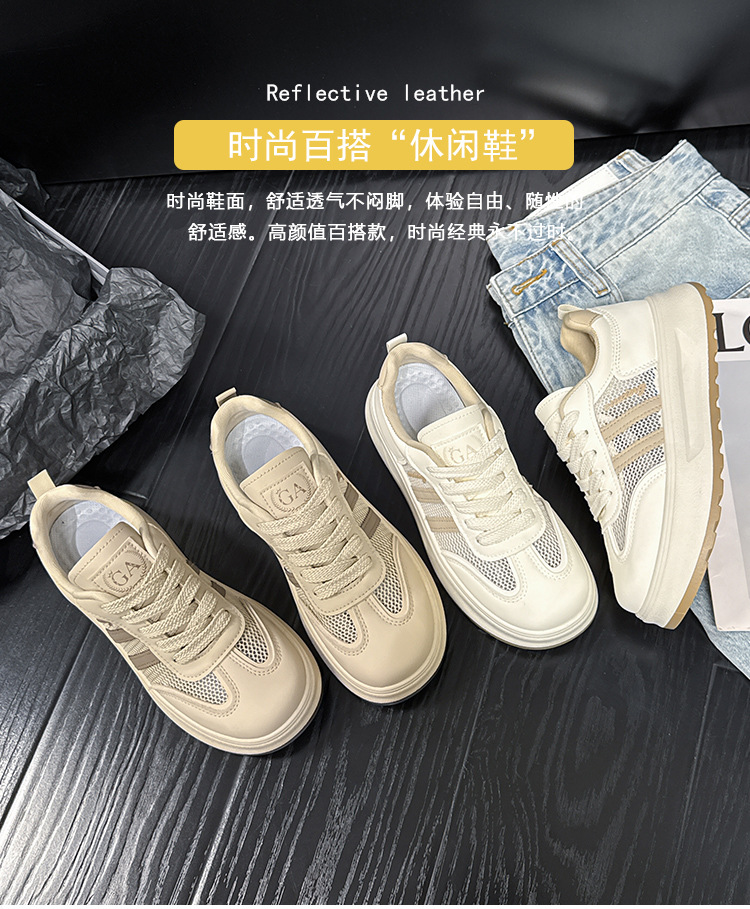 2025년 여름 신상 스포츠 및 레저 여성용 흰색 신발 한국식 두꺼운 밑창 가죽 다용도 신발 트렌디 스니커즈스토어 가기