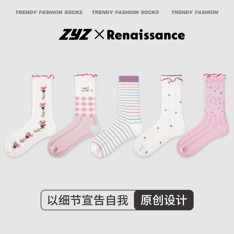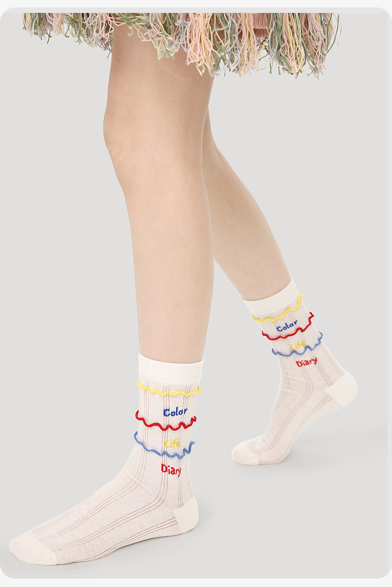 르네상스 양말 여성의 무지개 줄무늬 미드 튜브 여름 얇은 메쉬 통기성 귀여운 소녀의 긴 튜브 양말