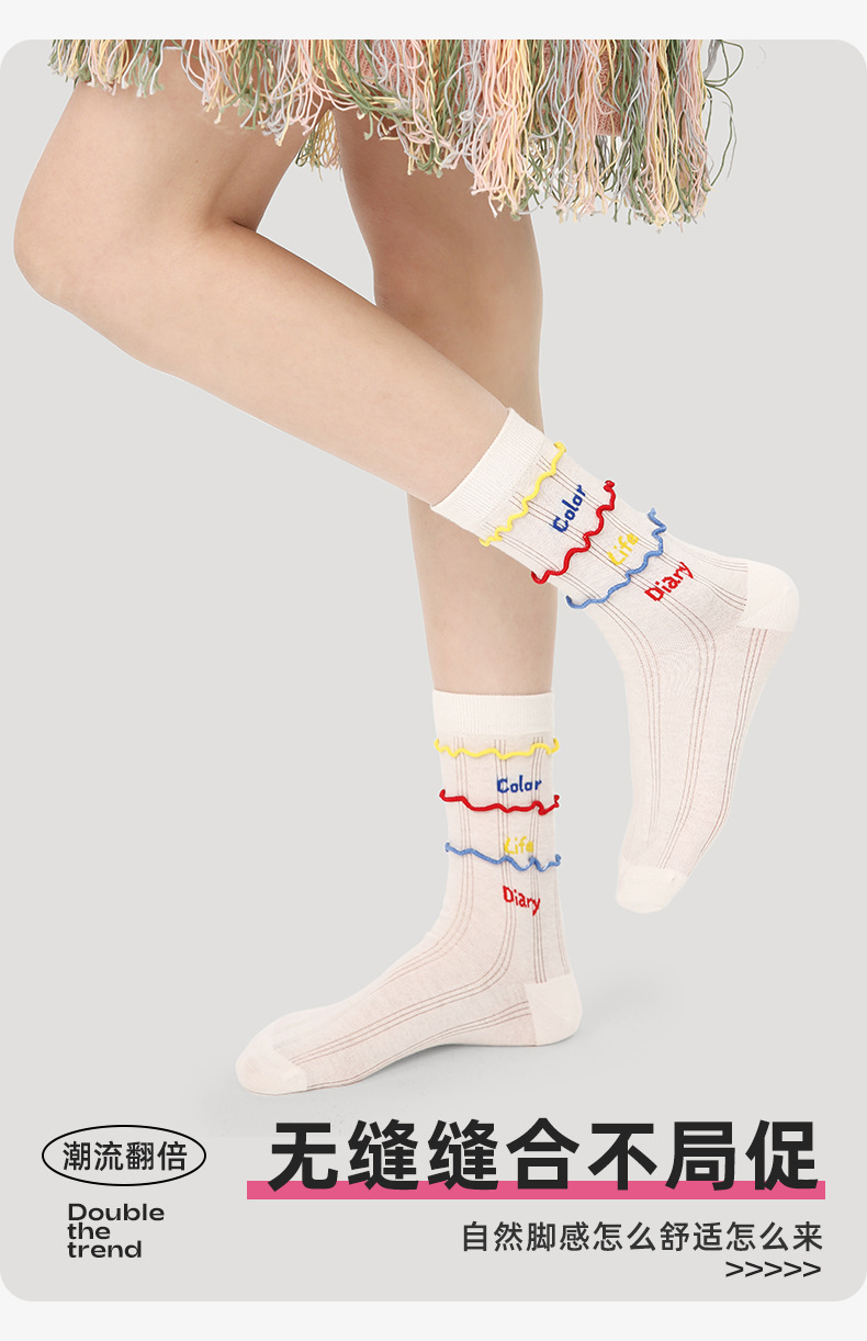 르네상스 양말 여성의 무지개 줄무늬 미드 튜브 여름 얇은 메쉬 통기성 귀여운 소녀의 긴 튜브 양말스토어 가기