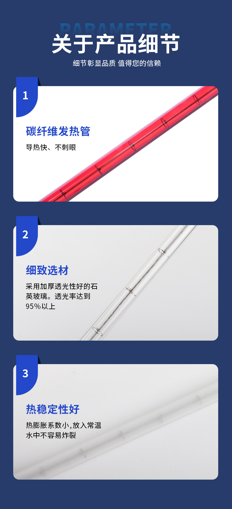 적외선 가열 튜브 전기 히터 가열 탄소 빨간색 튜브 물고기 탱크 가열 빨간색 튜브 루비 탄소 섬유 가열 튜브