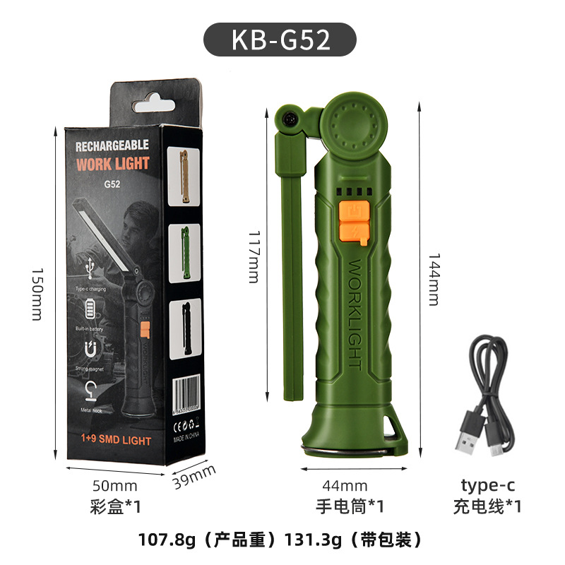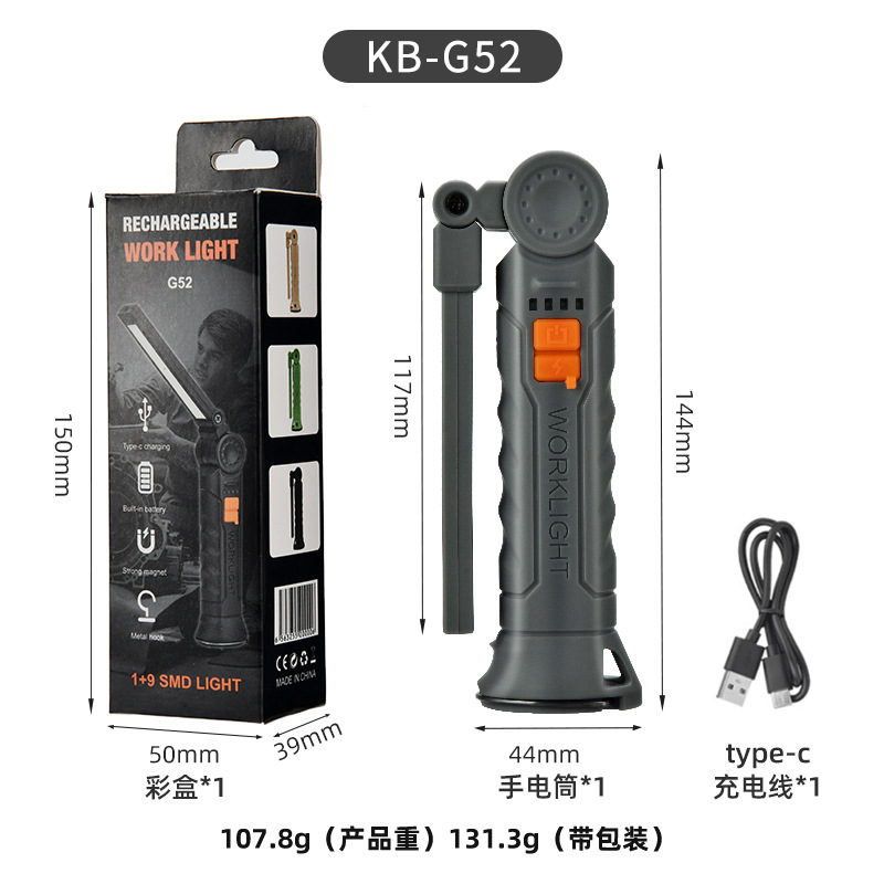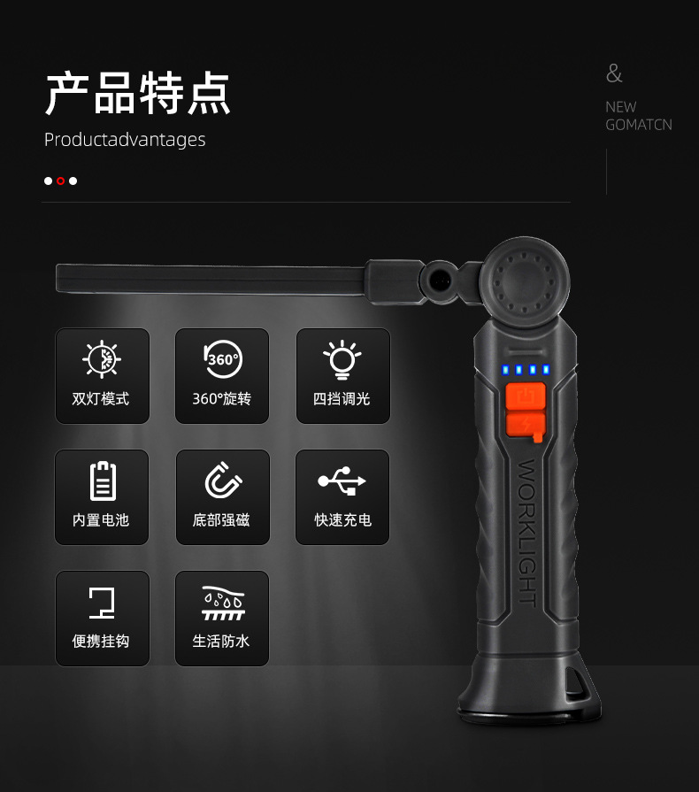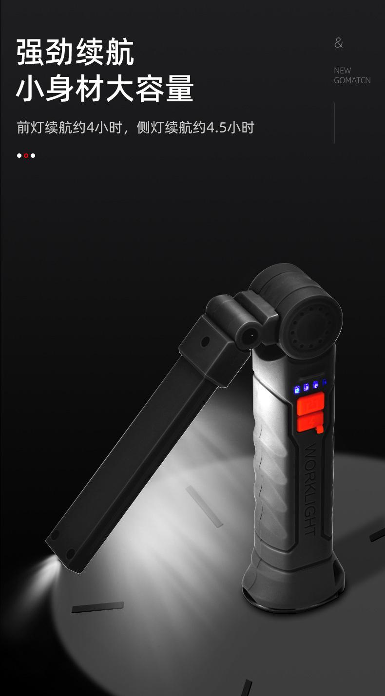 야외 다기능 COB 작업 조명 자기 LED 자동 수리 조명 강한 빛 LED 점검 회전식 충전식 손전등