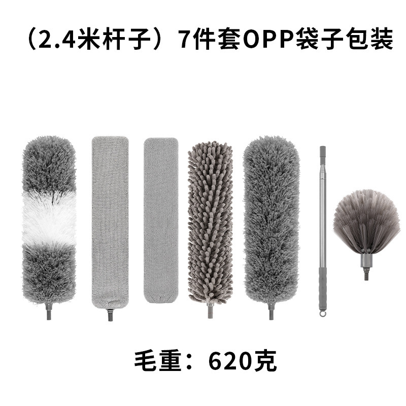• 2.4m + 회색 및 흰색 먼지떨이 + 회색 먼지떨이 + 틈새 먼지떨이 + 교체 천 + 둥근 셔닐 먼지떨이 + 거미줄 브러시 헤드