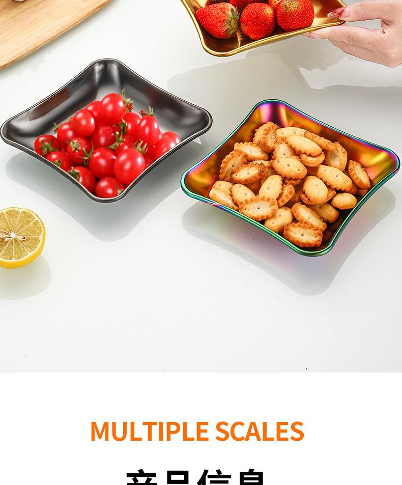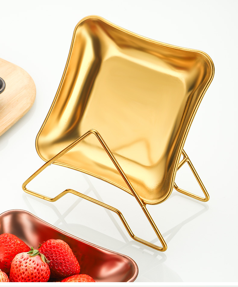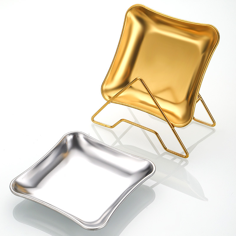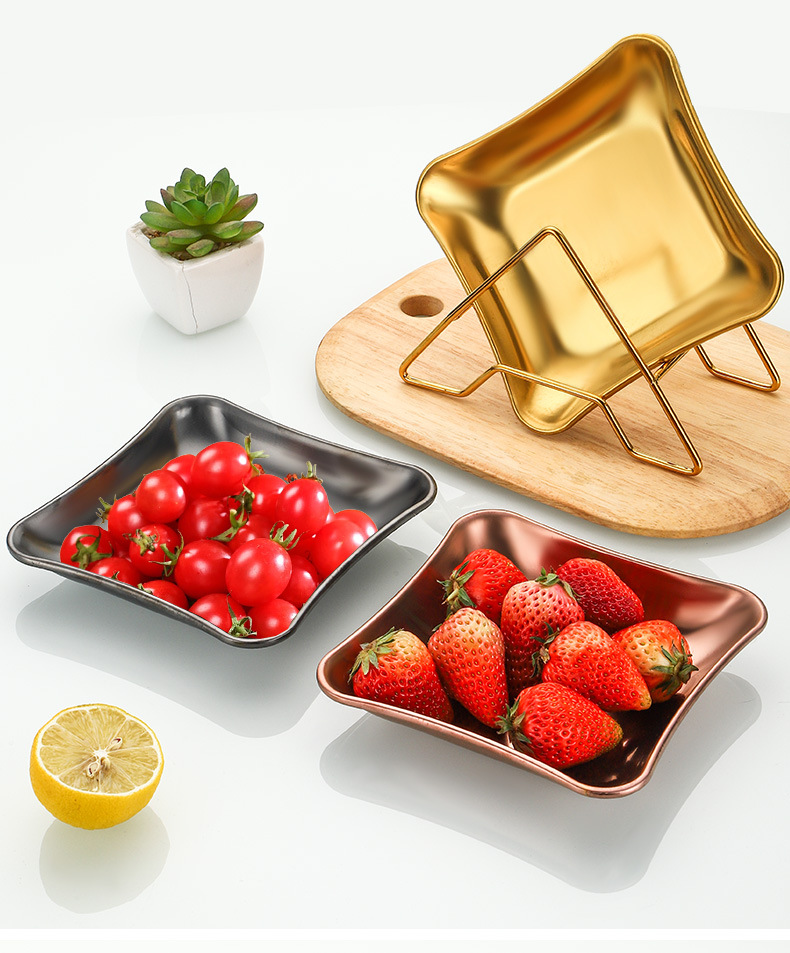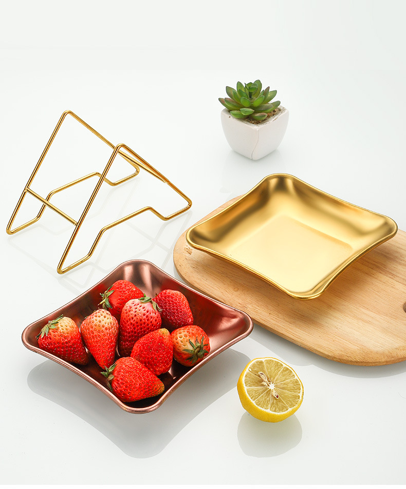 가벼운 럭셔리 스타일 스토리지 트레이 가정용 식기 스테인레스 스틸 과일 트레이 말린 과일 트레이 스낵 트레이 사각형 트레이