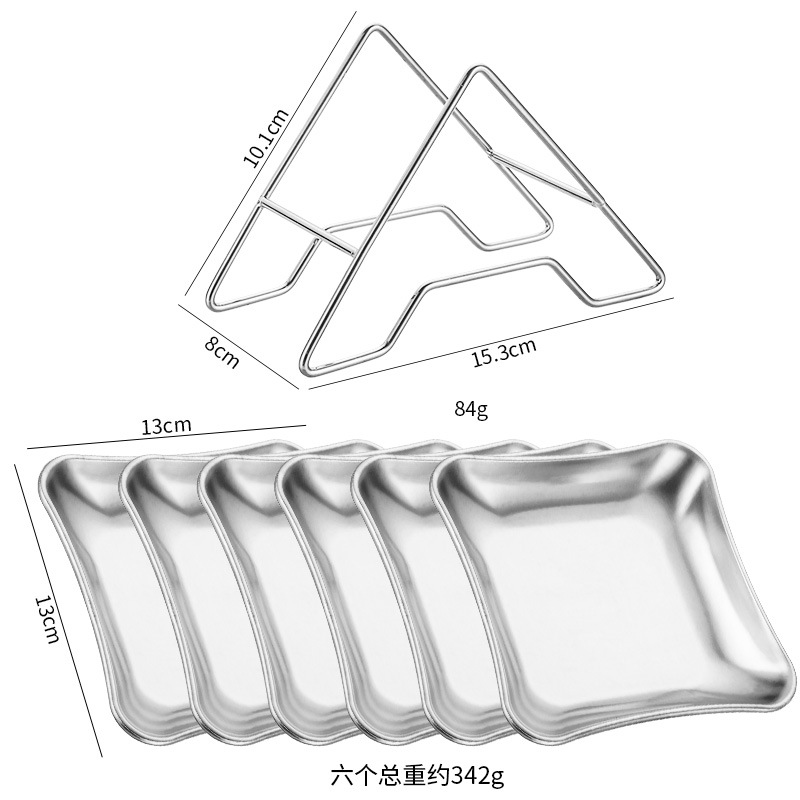 • [실버] 사각 스낵 접시 6개 + A자형 스탠드 1개