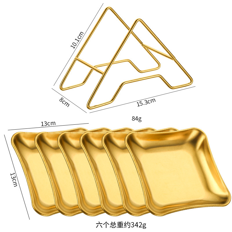 • [골드] 사각 스낵 접시 6개 + A자형 스탠드 1개