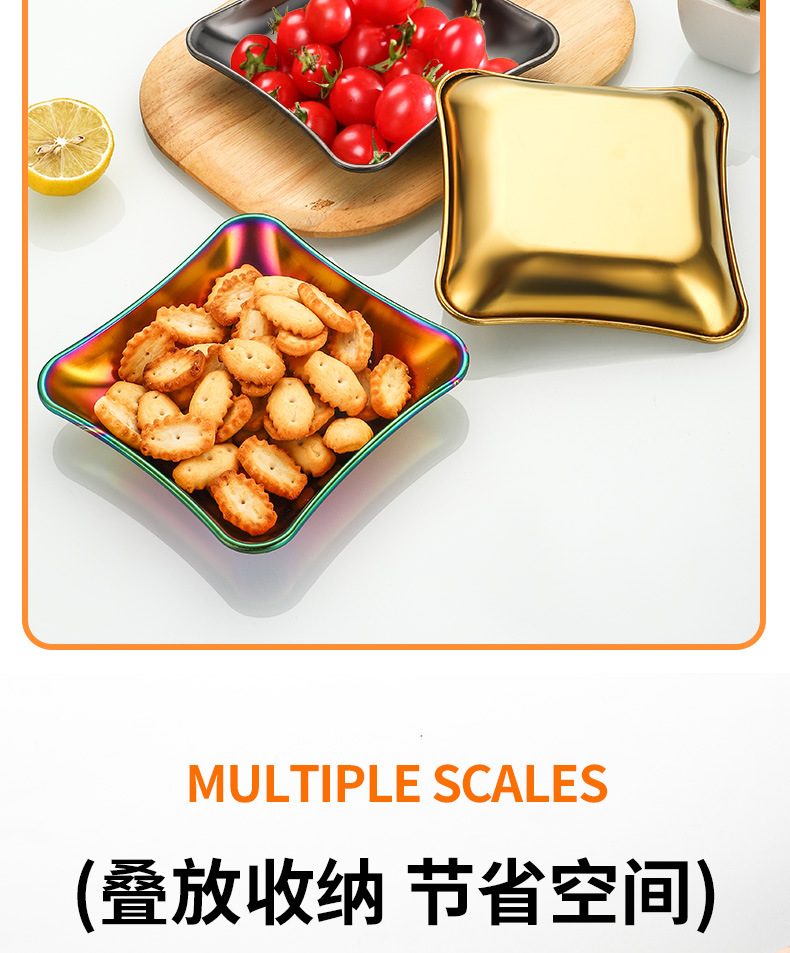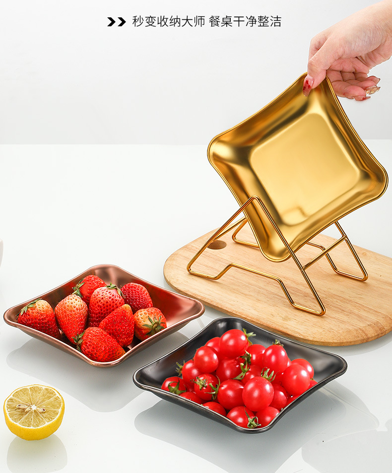 가벼운 럭셔리 스타일 스토리지 트레이 가정용 식기 스테인레스 스틸 과일 트레이 말린 과일 트레이 스낵 트레이 사각형 트레이스토어 가기