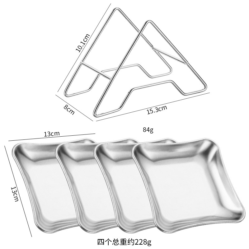 • [실버] 사각 스낵 접시 4개 + A자형 스탠드 1개