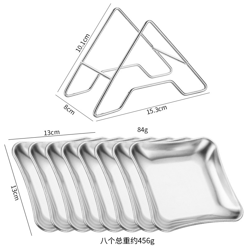 • [실버] 사각 스낵 접시 8개 + A자형 스탠드 1개