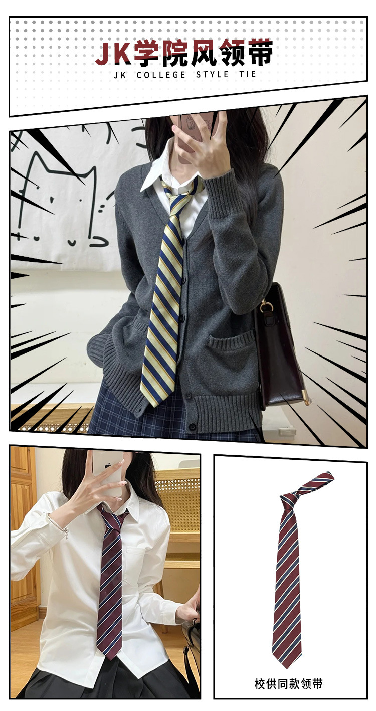 JK 넥타이 여성 셔츠 액세서리 버건디 스트라이프 넥타이 일본 대학 스타일 블루 핸드 넥타이 제조업체 재고 있음스토어 가기