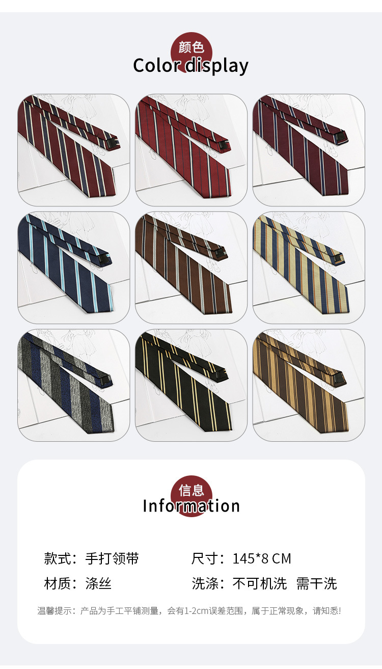 JK 넥타이 여성 셔츠 액세서리 버건디 스트라이프 넥타이 일본 대학 스타일 블루 핸드 넥타이 제조업체 재고 있음