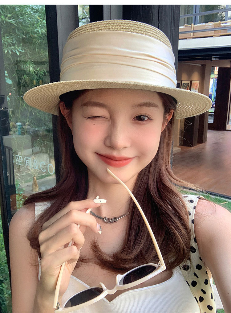 새틴 플랫 탑 밀짚모자 2025 신상 여성 플랫 챙 선캡 여성용 패션 자외선 차단 모자 밀짚 플랫 탑 썬햇스토어 가기