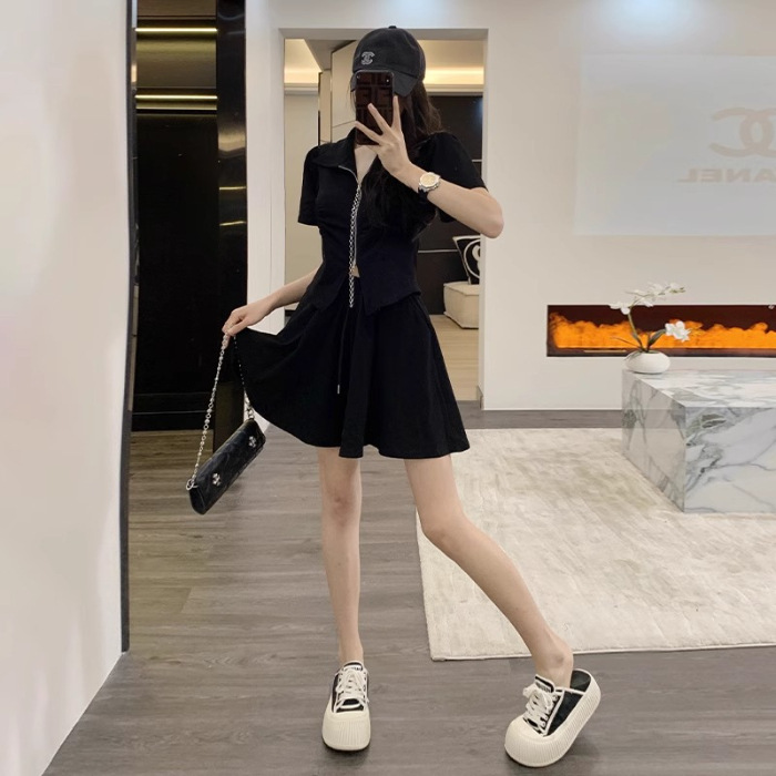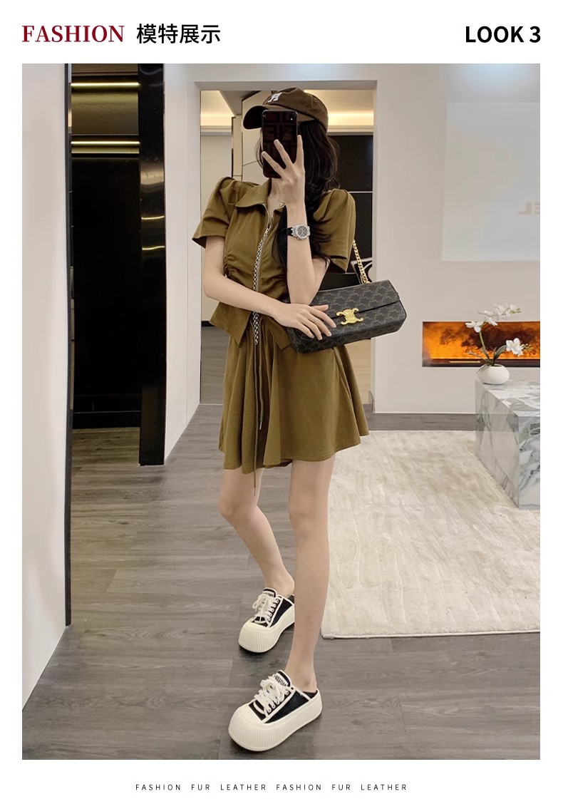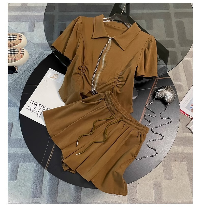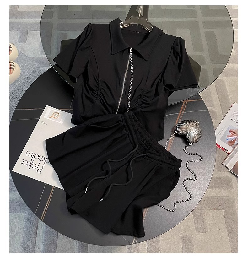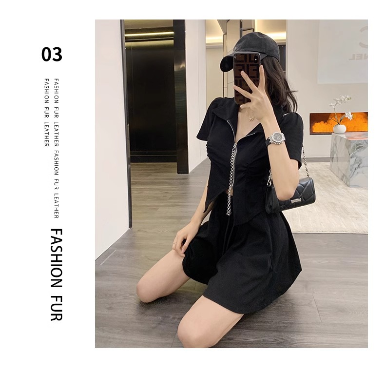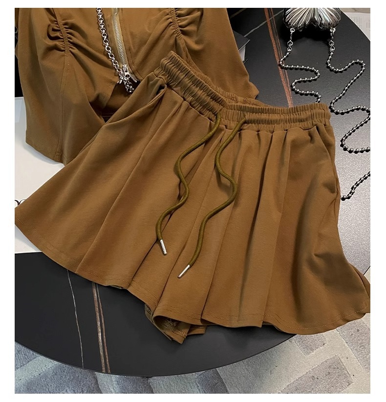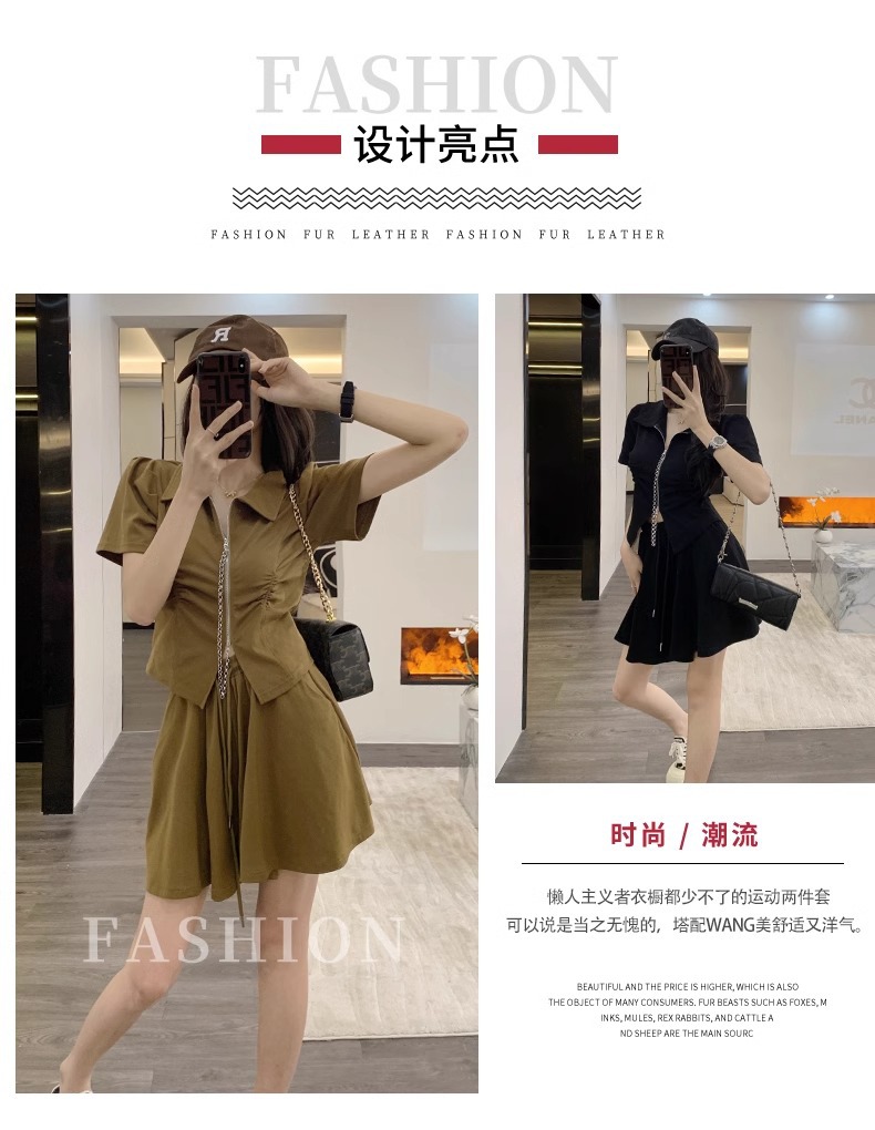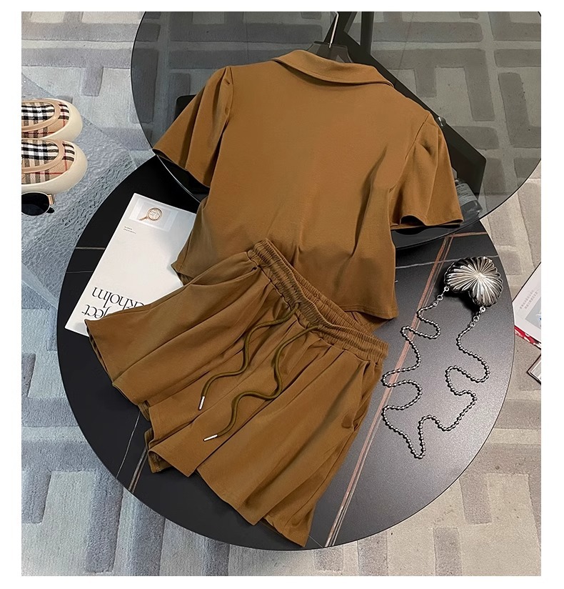 하이 엔드 패션 트렌드 스포츠 세트 솔리드 컬러 패션 작은 캐주얼 슬리밍 웨스턴 스타일 스트리트 프라이드 투피스 반바지스토어 가기