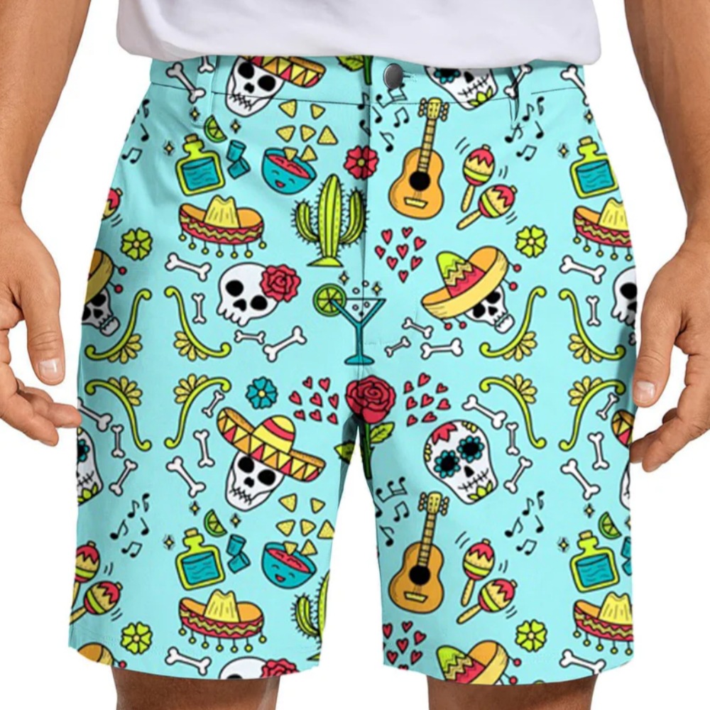2025 새로운 남성 패션 캐주얼 하와이 골프 바지 꽃 패턴 남성 골프 반바지