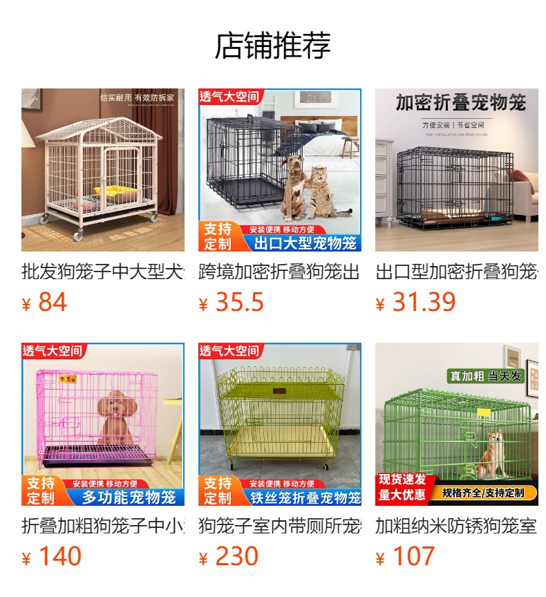 모든 사각형 튜브 개 케이지 대담한 개 케이지 중형 및 대형 개 실내 애완 동물 케이지 화장실 철 케이지 개 사육장 도매스토어 가기
