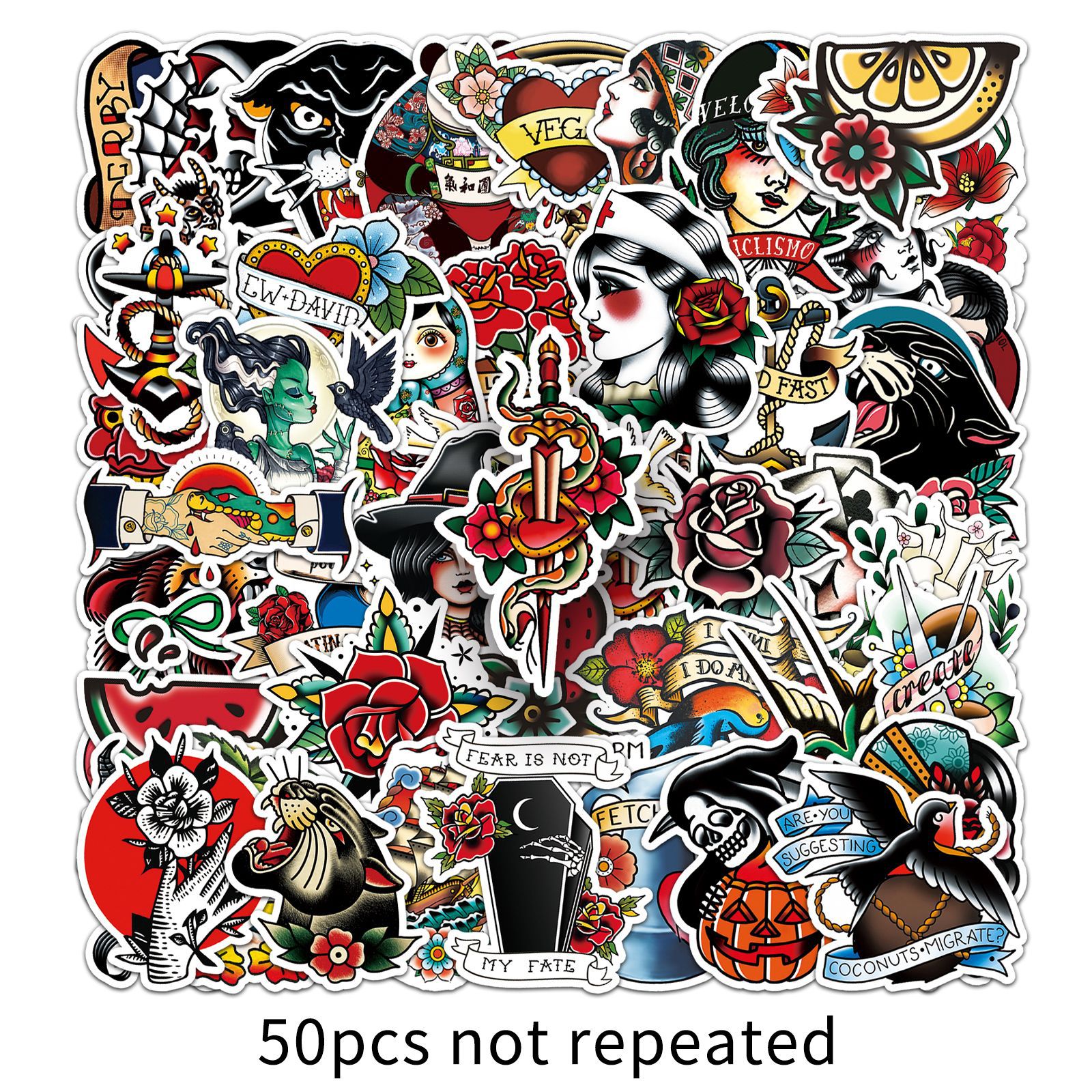 50 문신 낙서 스티커 레트로 만화 창조적 인 방수 장식 휴대 전화 노트북 수하물 스티커스토어 가기