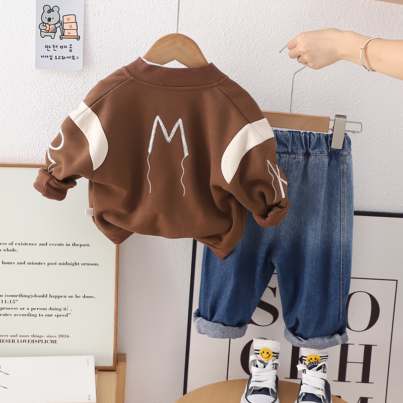 소년 야구 유니폼 스포츠 세트 봄과 가을 서양식 2024 새로운 어린이 잘 생긴 가을 옷 3 피스 도매스토어 가기