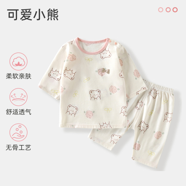 어린이 잠옷 여름 얇은 아기복 신생아 홈웨어 아기옷 남아 7부 소매 여름 수박스토어 가기