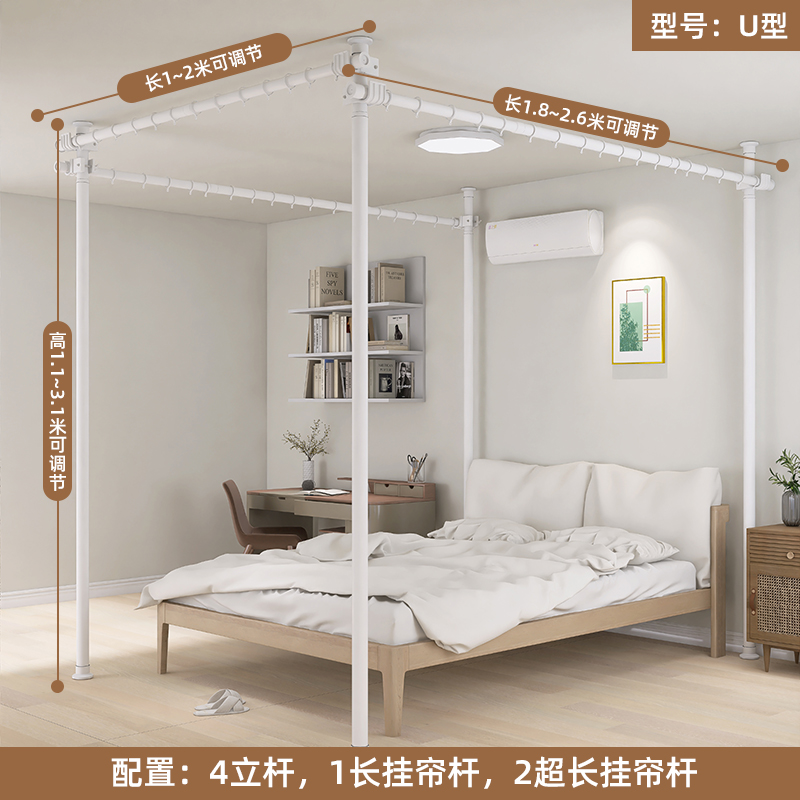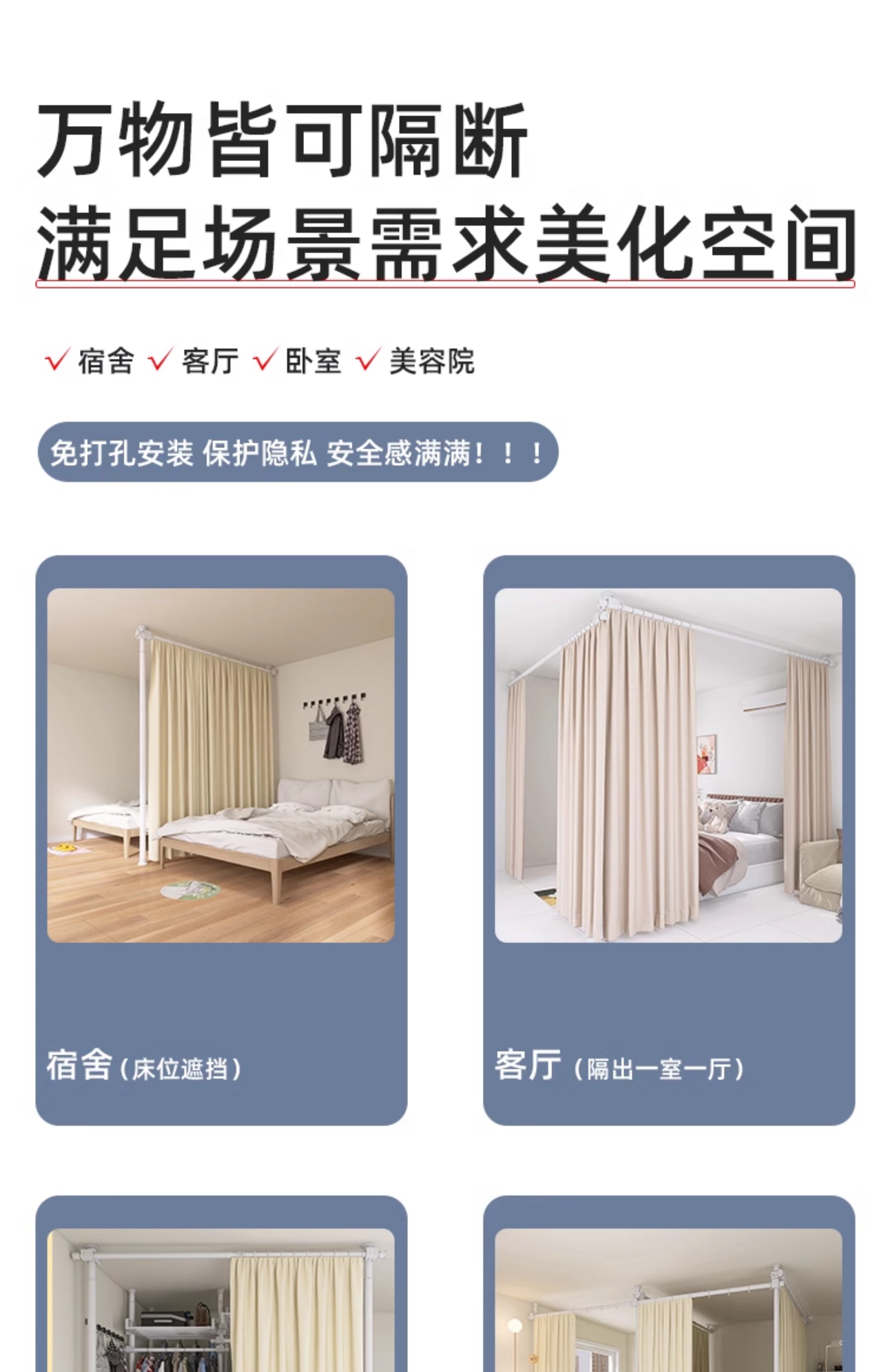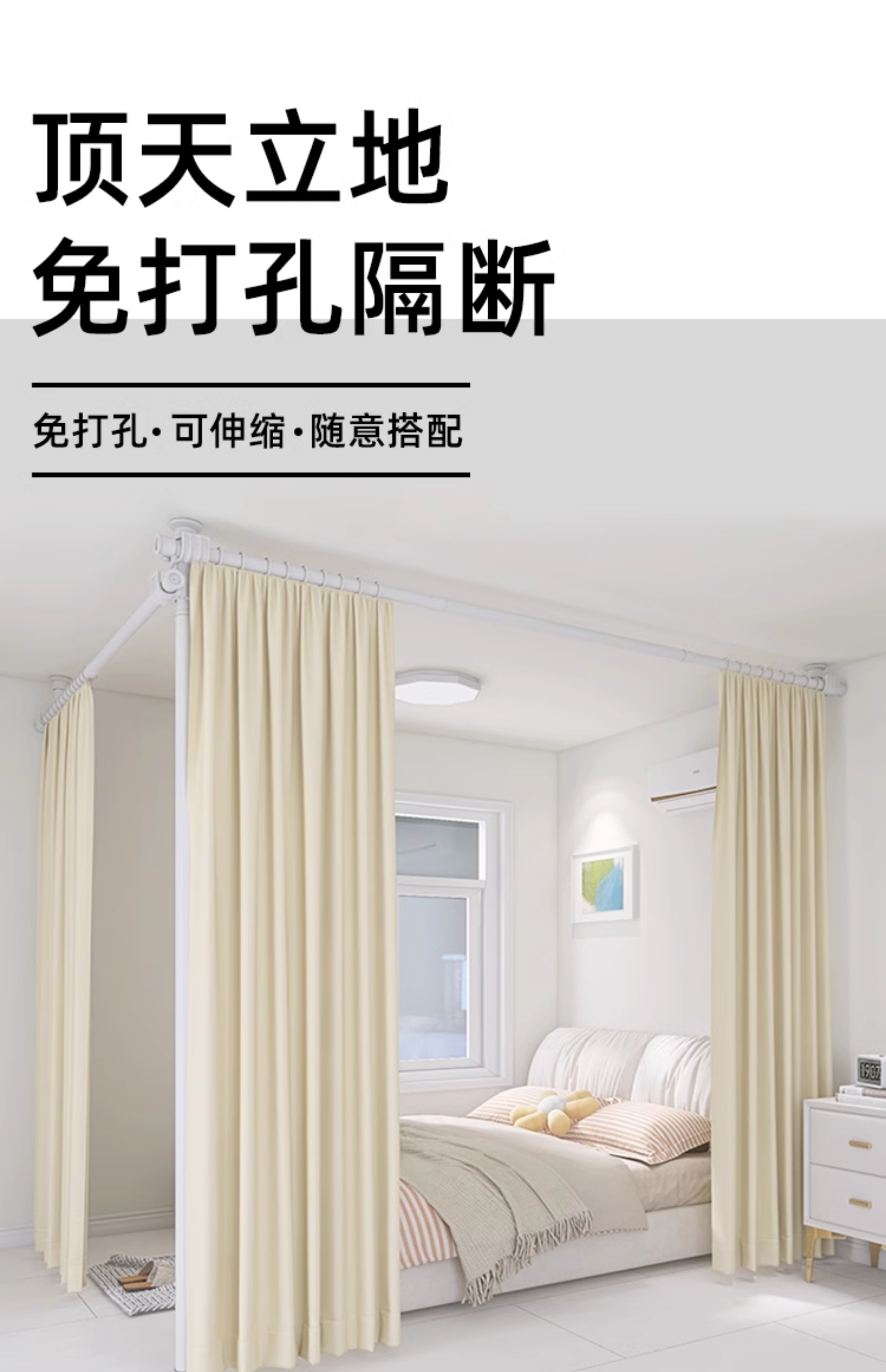 구멍이나 못이 없는 텔레스코픽 레일, 천장부터 바닥까지 커튼 레일 지지대, 칸막이 커튼 브래킷 세트스토어 가기