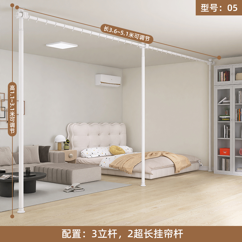 • 05+ 커튼: 수직 3개 및 커튼을 포함한 매우 긴 수평 막대 2개(적용 범위 3.6~ 5.1m )