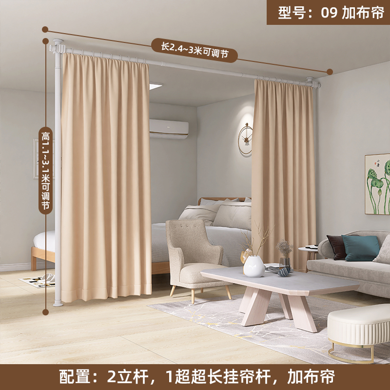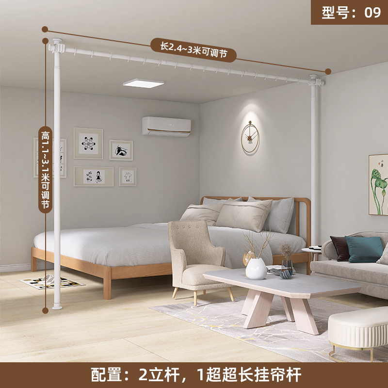 • 09+ 커튼: 수직 2개 및 커튼을 포함한 매우 긴 크로스바 1개(적용 범위 2.4~ 3m )