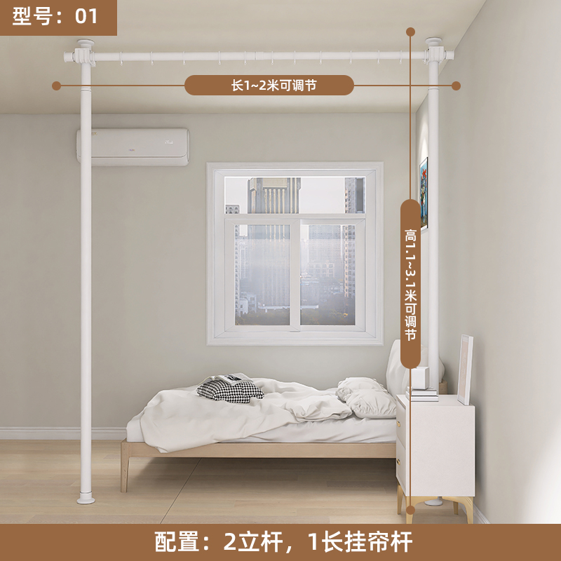 • 01+커튼: 수직 2개 및 커튼을 포함한 확장 크로스바 1개(적용 범위 1~1.9m)