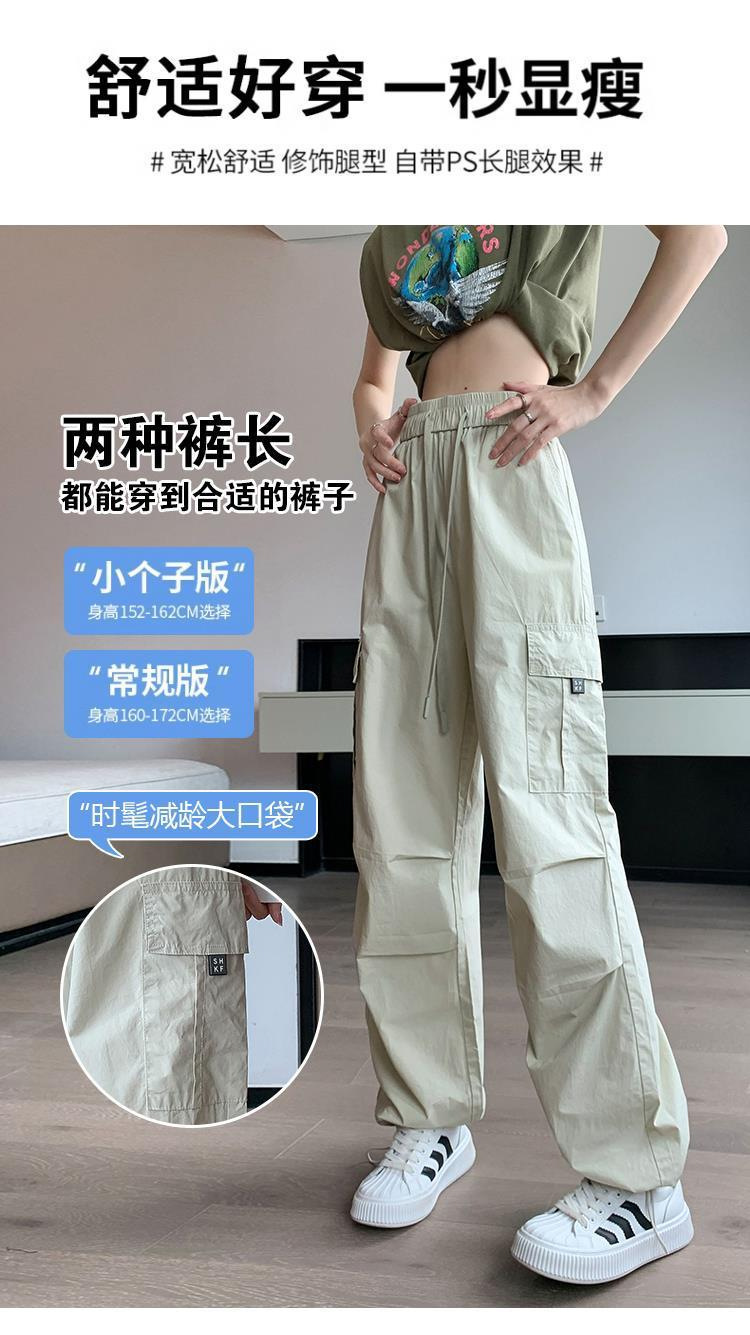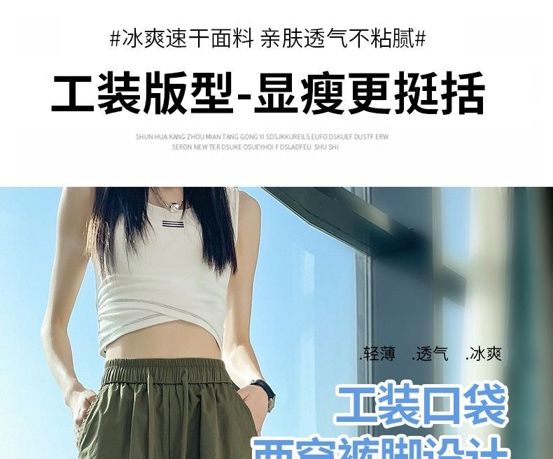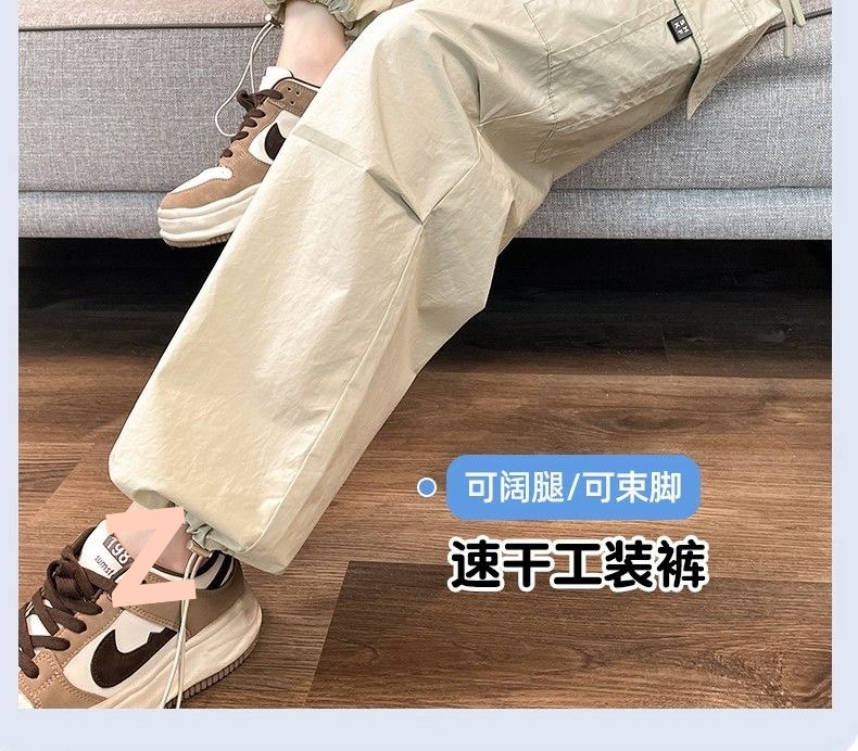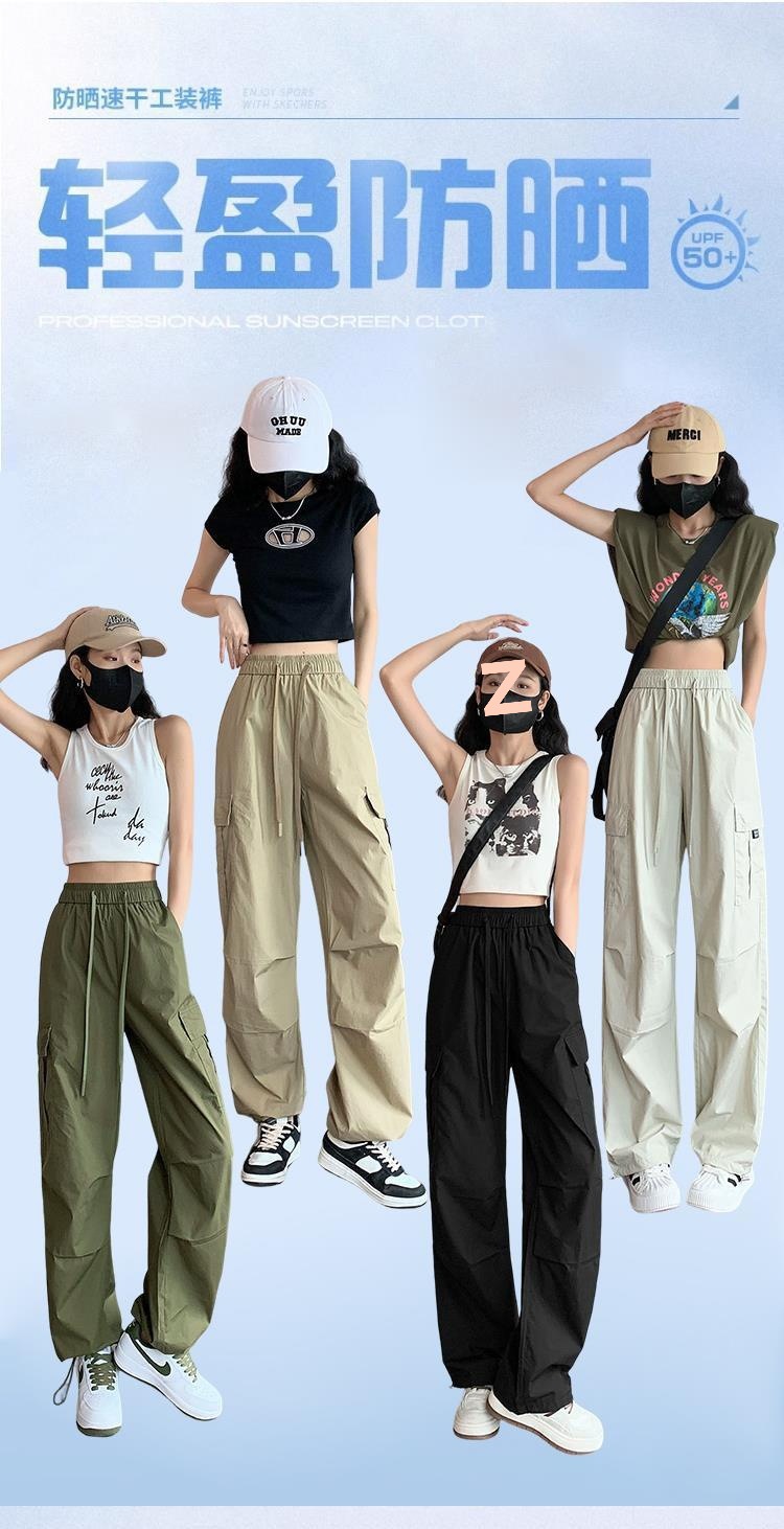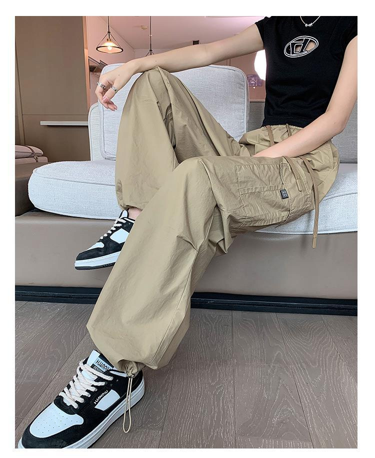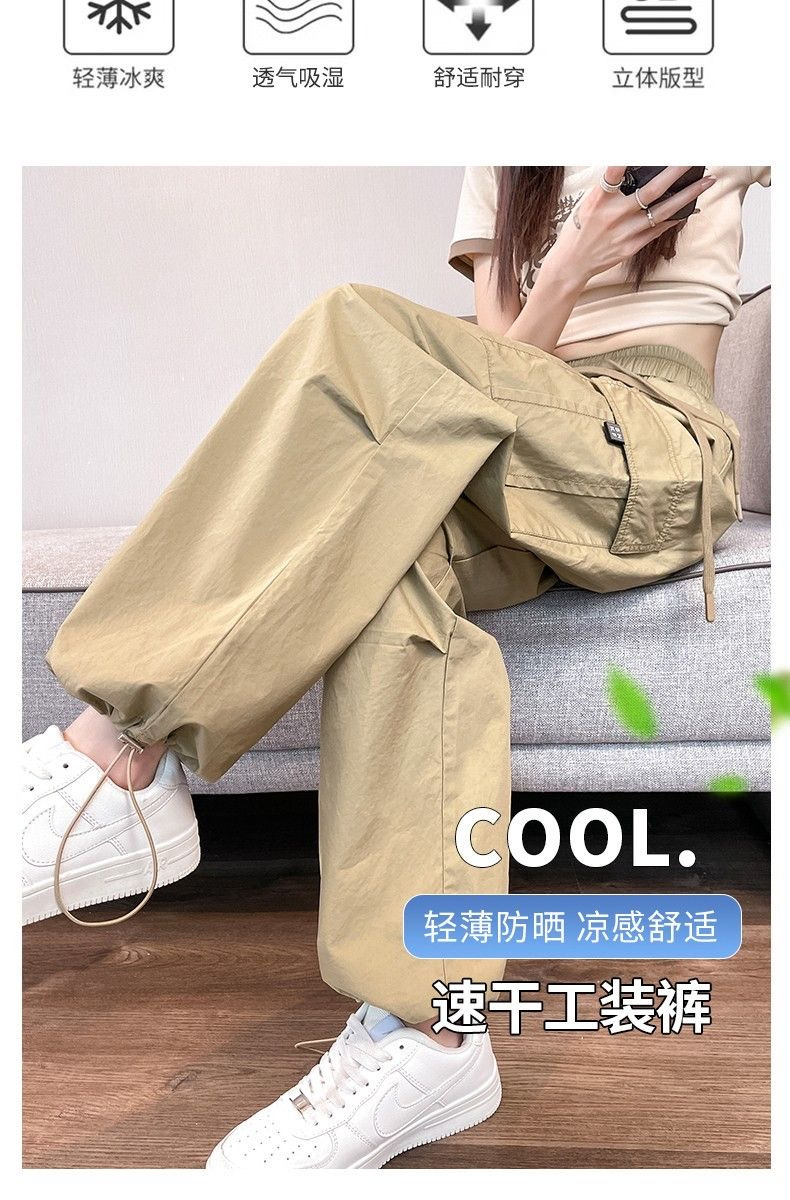 여성을위한 얼음 실크 속건성 작업복 2025 여름 얇은 하이 웨이스트 드로우 스트링 레깅스 하이킹 바지 아메리칸 하렘 스웨트 팬츠