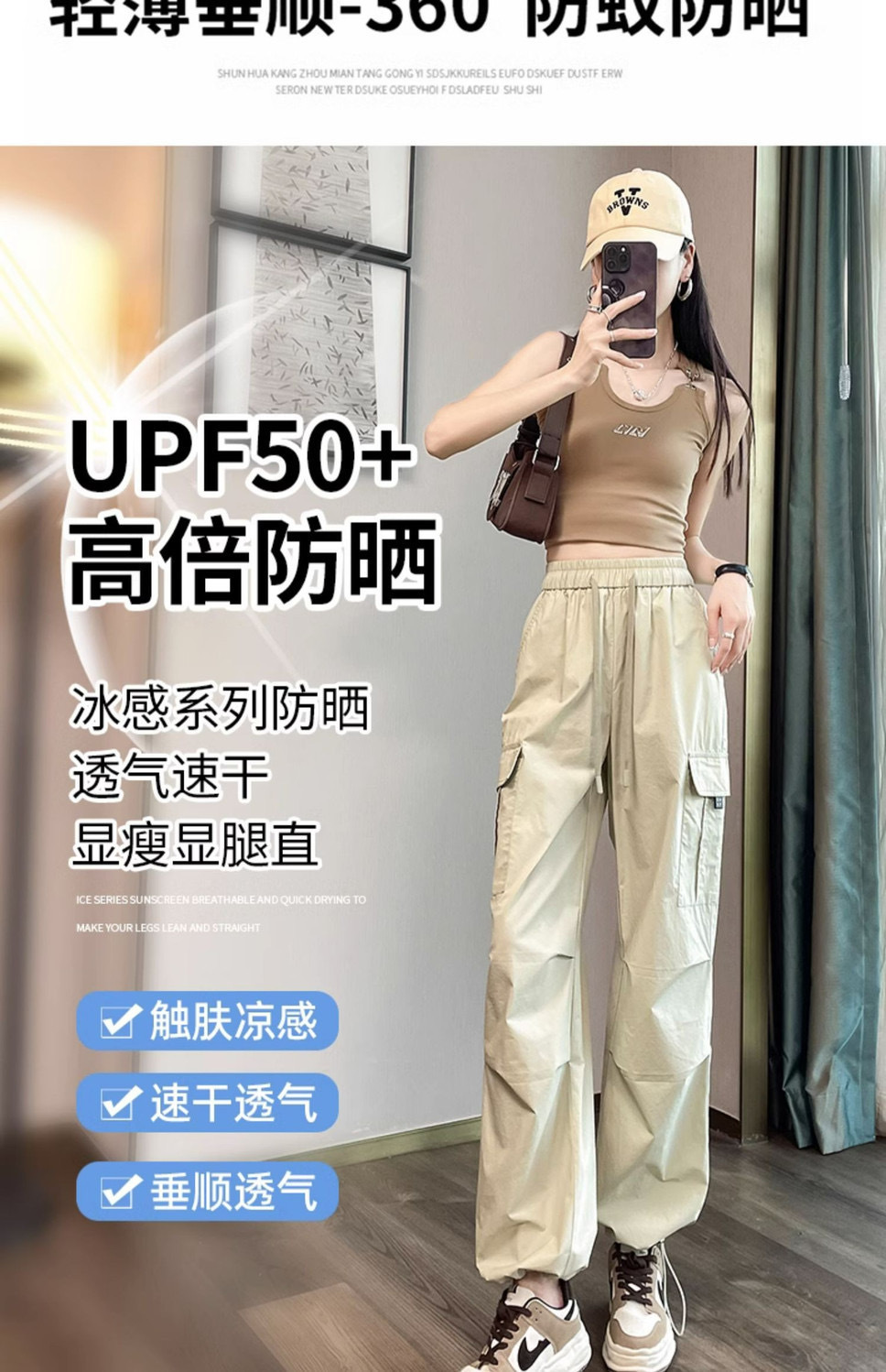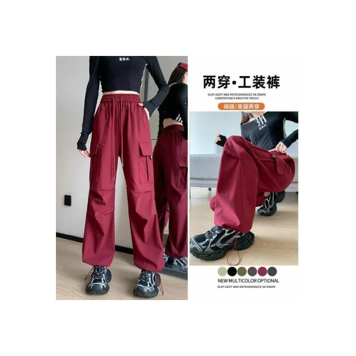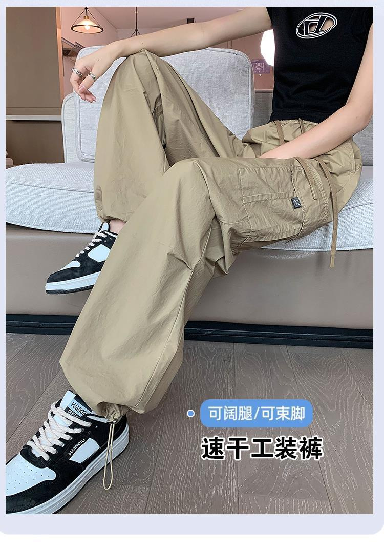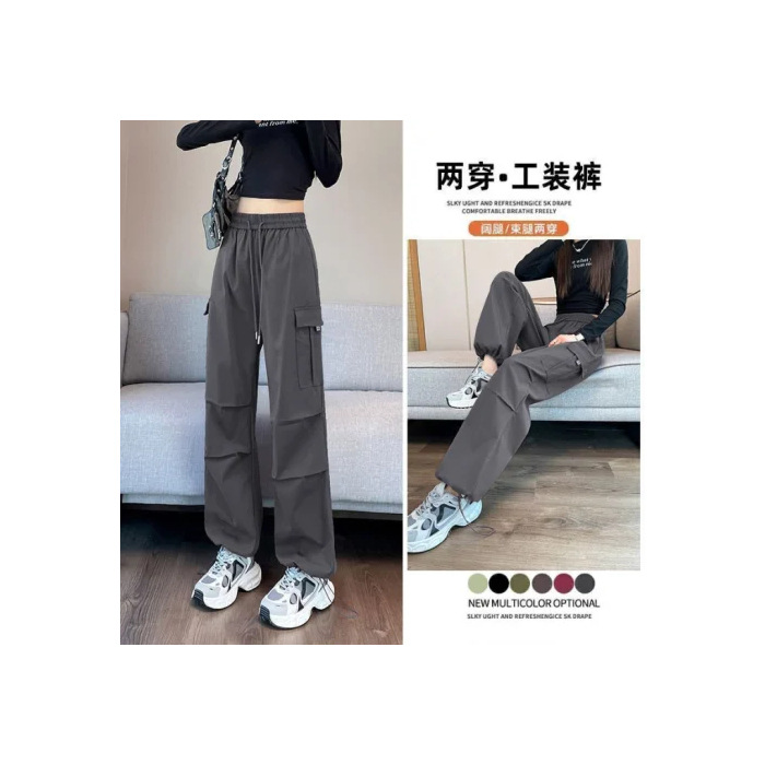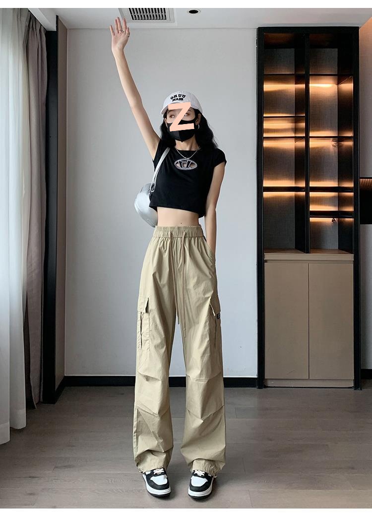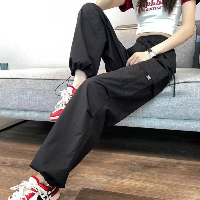 여성을위한 얼음 실크 속건성 작업복 2025 여름 얇은 하이 웨이스트 드로우 스트링 레깅스 하이킹 바지 아메리칸 하렘 스웨트 팬츠