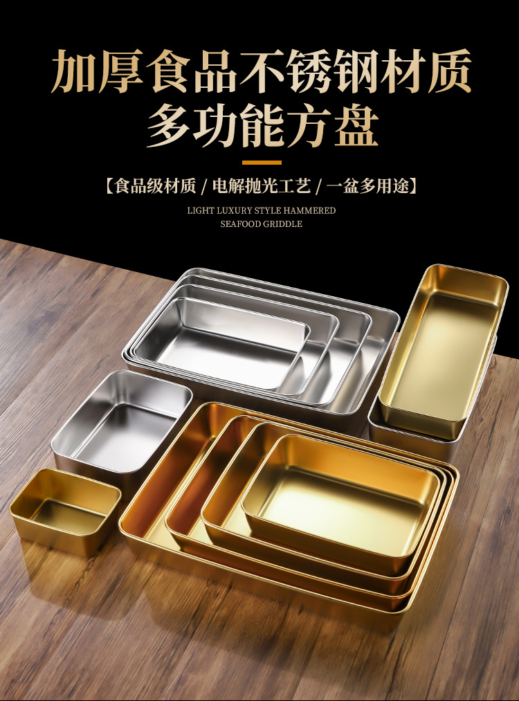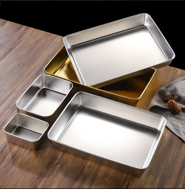 스테인레스 스틸 트레이 오리 목 냉면 와인 용기 사각형 접시 상자 상업용 직사각형 접시 뚜껑 포함스토어 가기