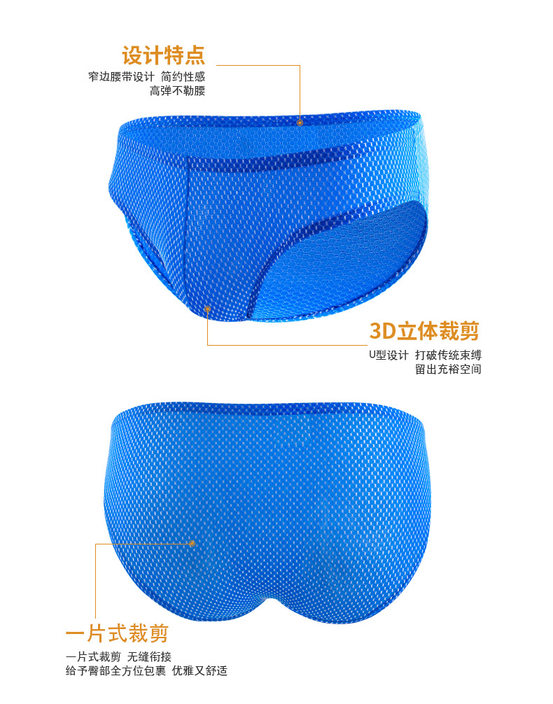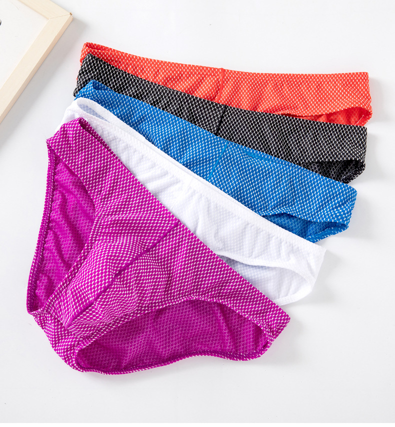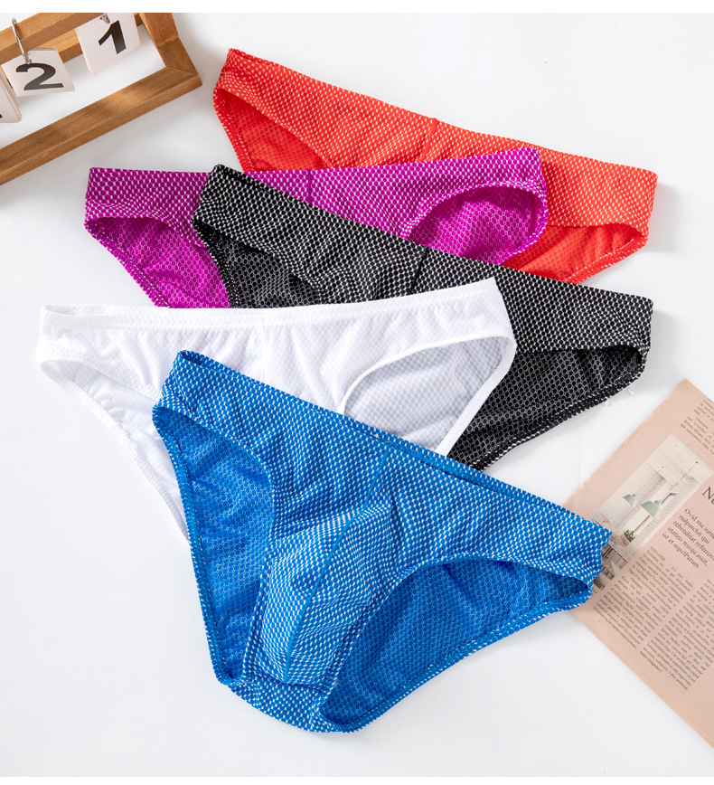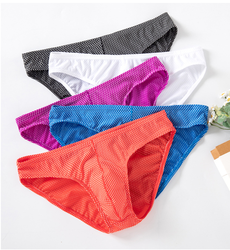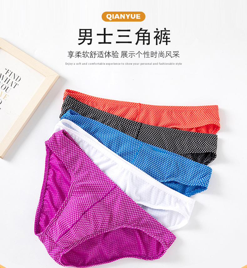 남성용 팬티, 중간 허리 아이스 실크 속옷, 남성용 편안하고 통기성이 뛰어나며 고탄성, 좁은 허리띠, 섹시한 작은 격자 무늬 반바지