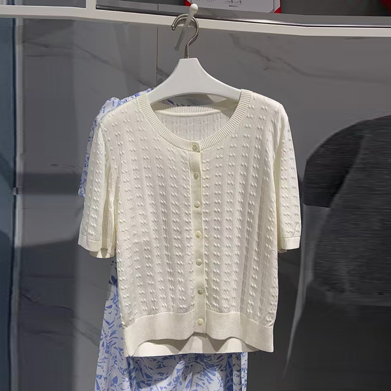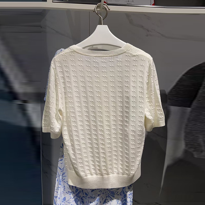 2025 년 여름 새로운 기질 조커 단색 둥근 목 꼬인 꽃 반팔 스웨터 여성 1G4331281G스토어 가기