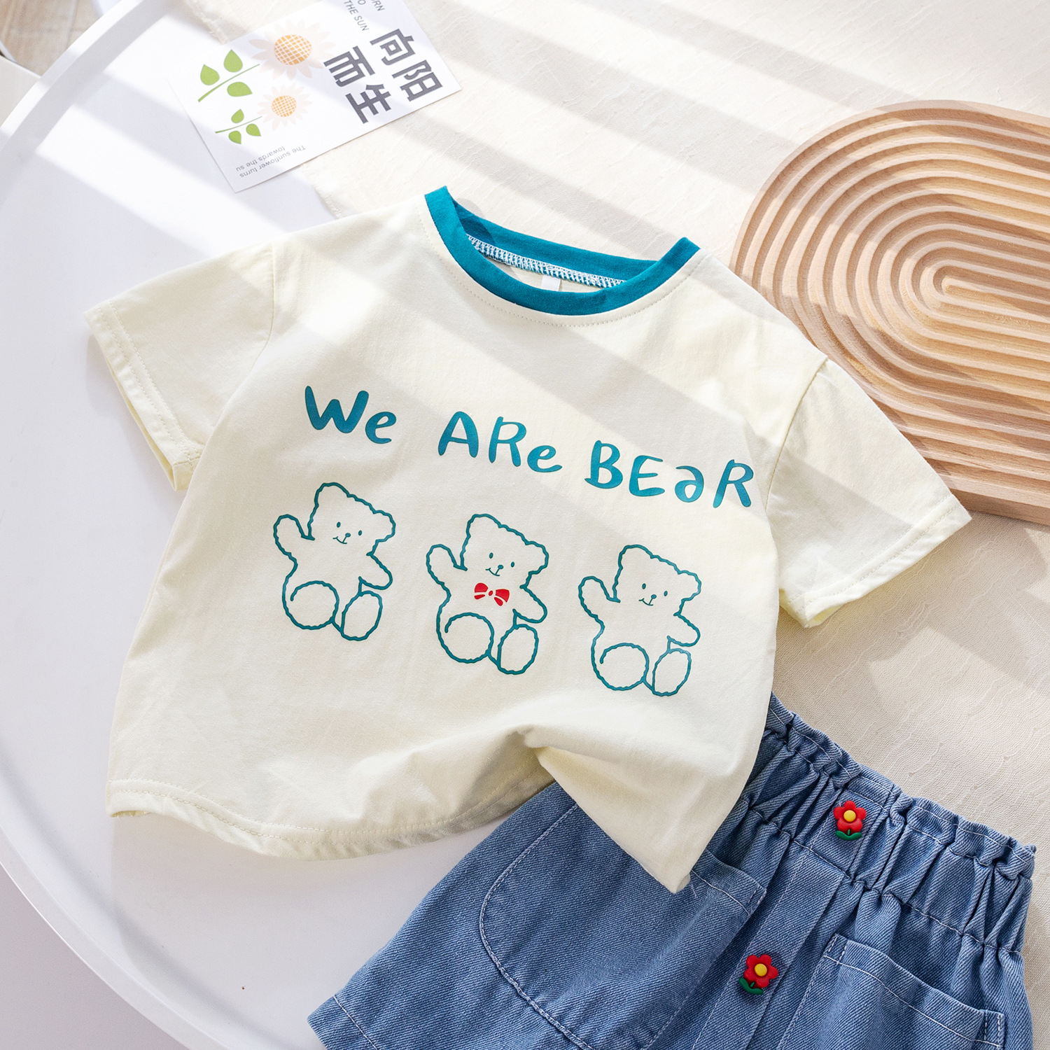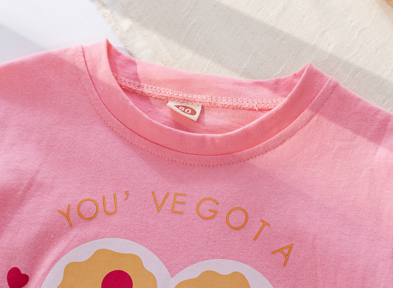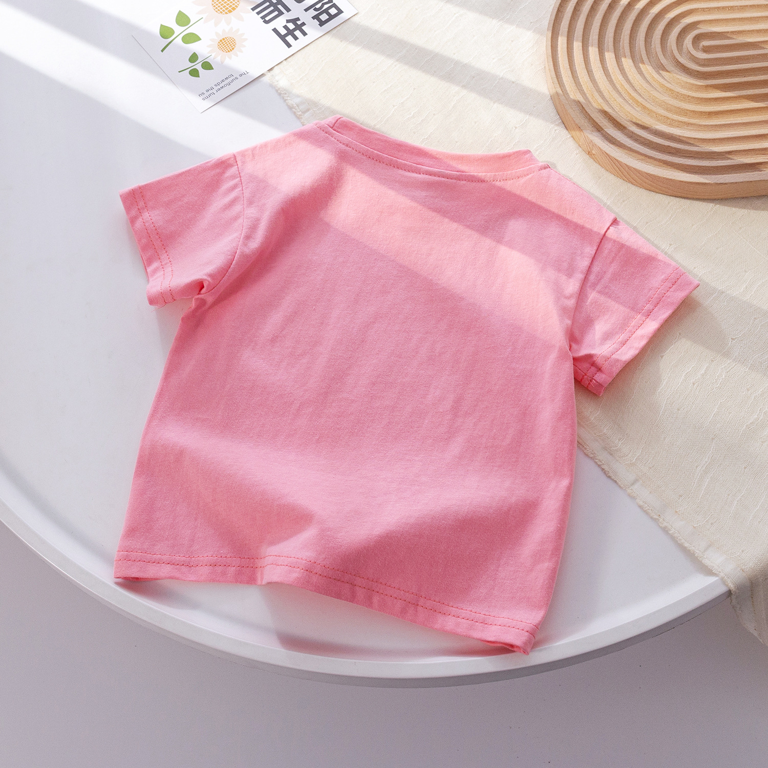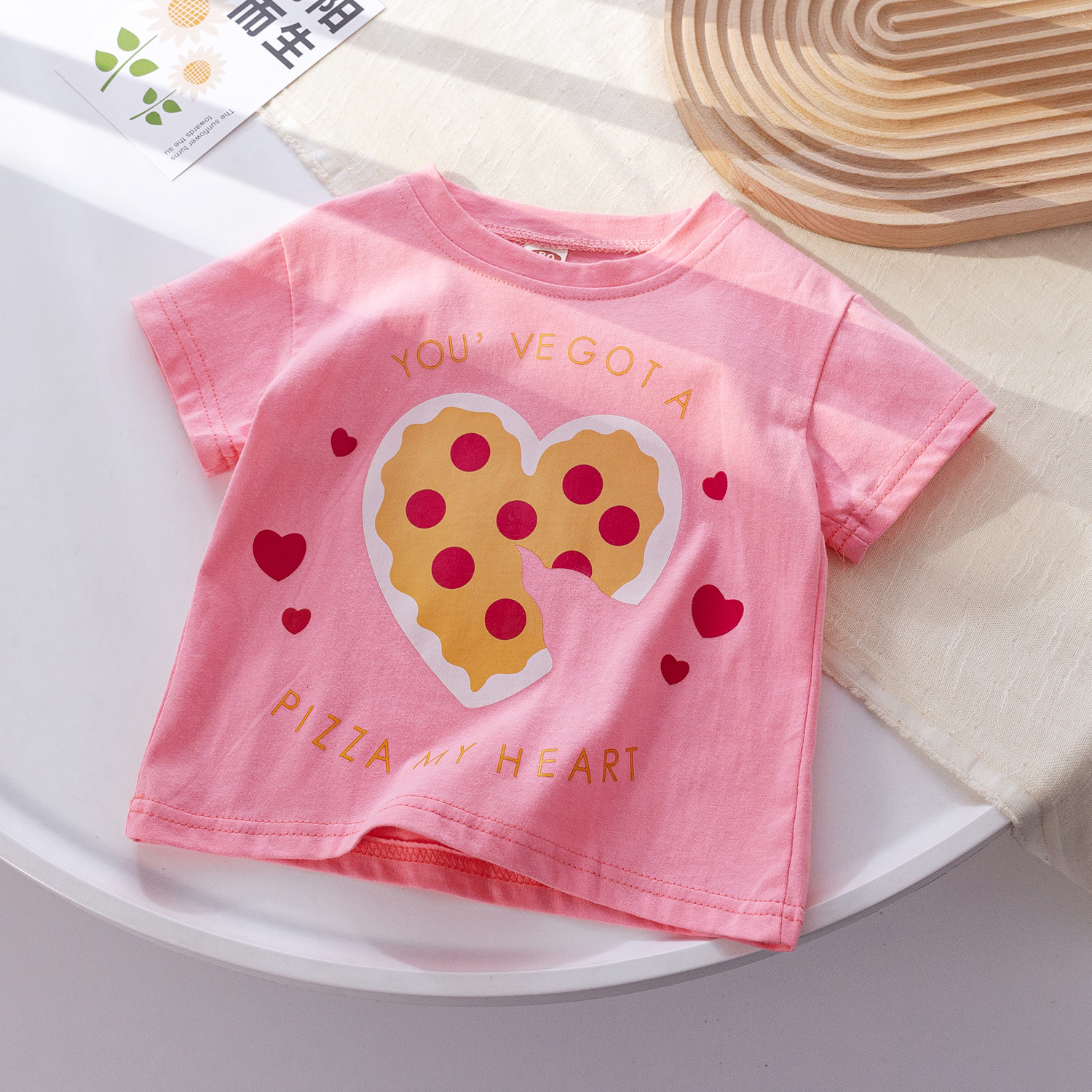 아동복 소녀 여름 새로운 빨간 사랑 면 반팔 티셔츠 아기 소녀의 서양식 둥근 목 외신베이스 셔츠스토어 가기