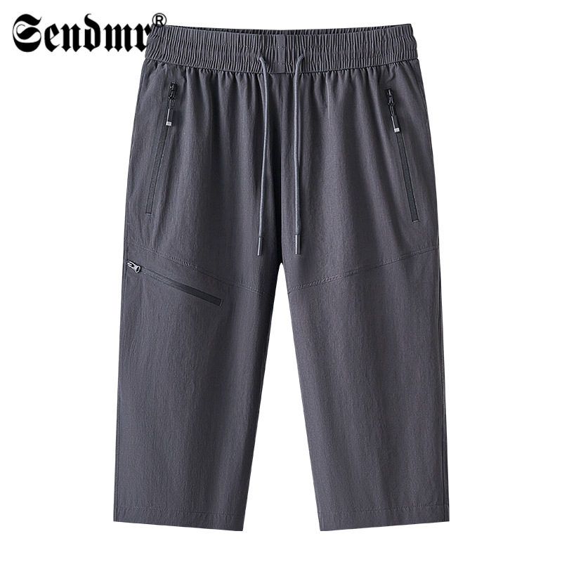 아이스 실크 카프리 바지 남자 여름 빠른 건조 중간 길이 바지 느슨한 얇은 7 점 바지 스포츠 캐주얼 스트레이트 빠른 건조 반바지