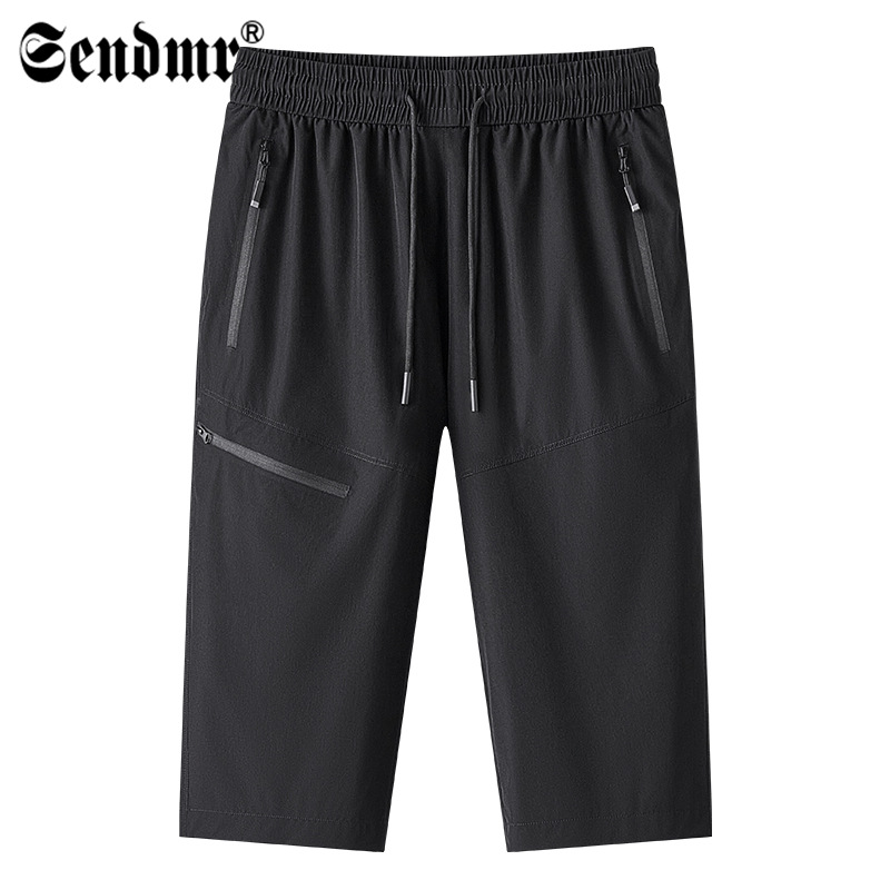 아이스 실크 카프리 바지 남자 여름 빠른 건조 중간 길이 바지 느슨한 얇은 7 점 바지 스포츠 캐주얼 스트레이트 빠른 건조 반바지스토어 가기