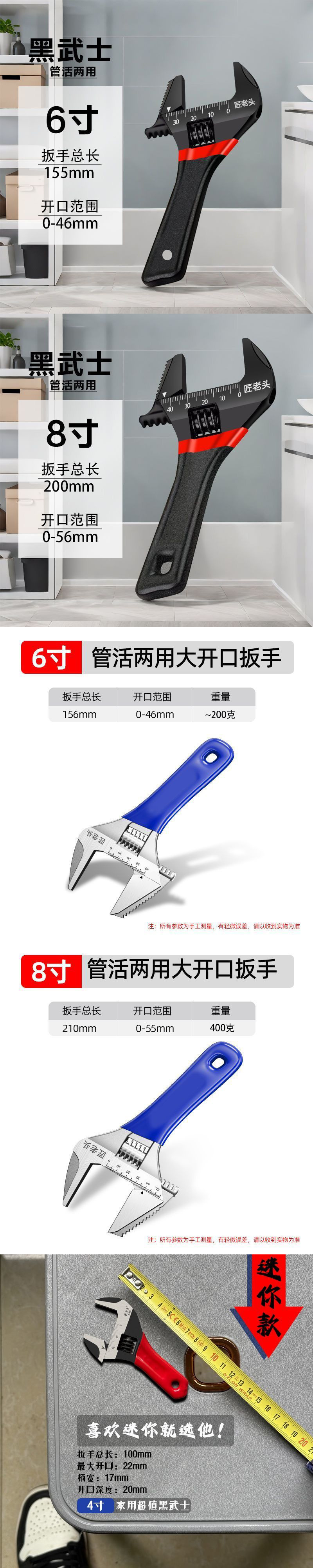 조절식 렌치 6inch 8inch 욕실용 올스틸 짧은 손잡이 만능 범용 배관공 특수 도구 판매 중스토어 가기