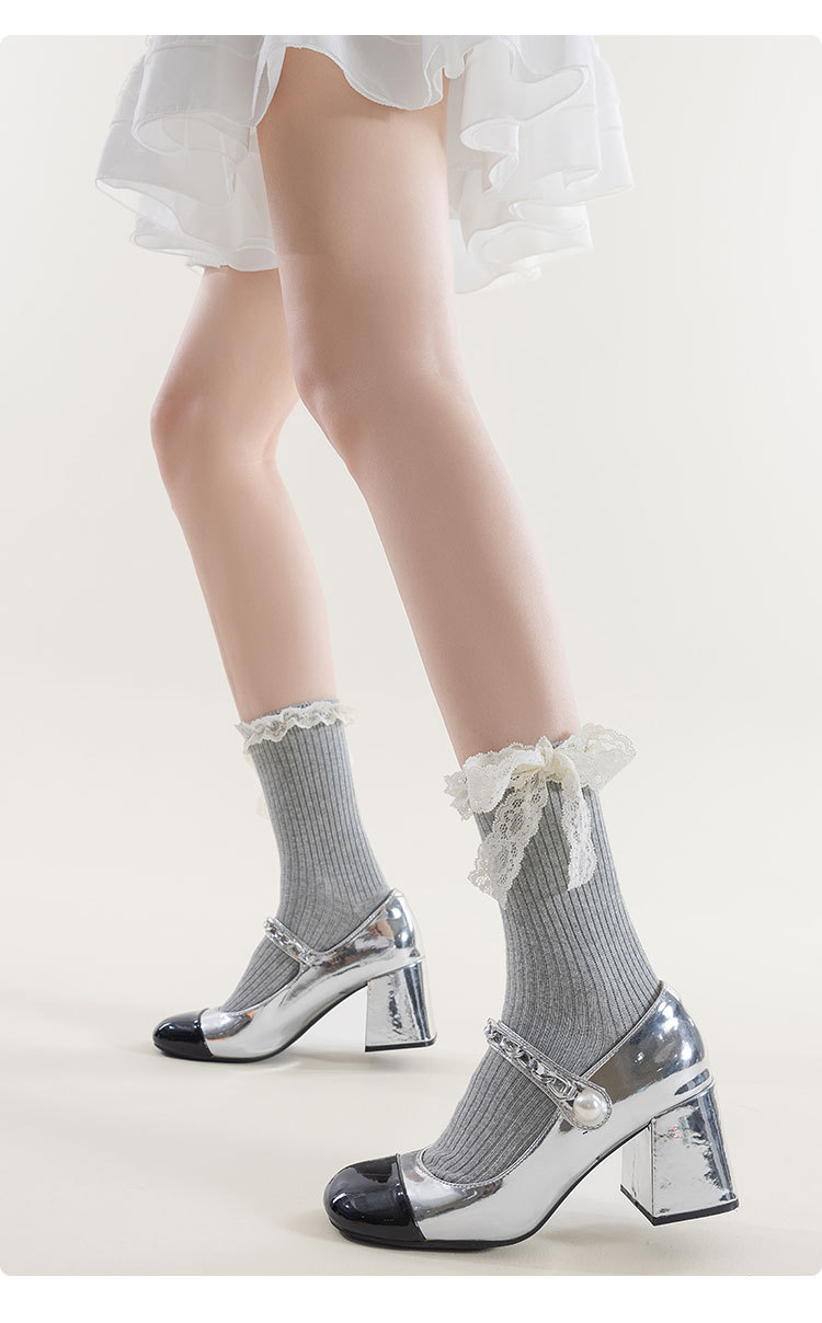 양말 여성 디자이너 레이스 코튼 양말 보우 소녀 모리 스타일 중간 길이 양말 발레 신발 양말
