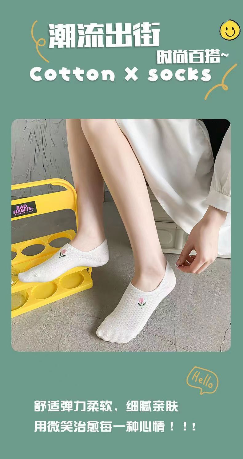 양말 여성의 여름 얇은 흰색 올매치 귀여운 만화 얕은 탑 보트 양말 통기성 땀 흡수성 일본 보이지 않는 양말스토어 가기