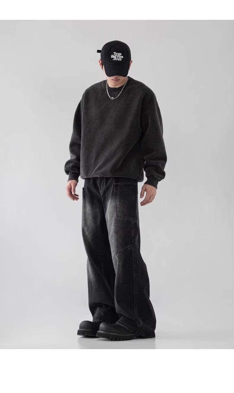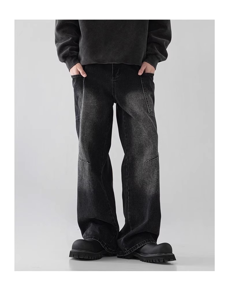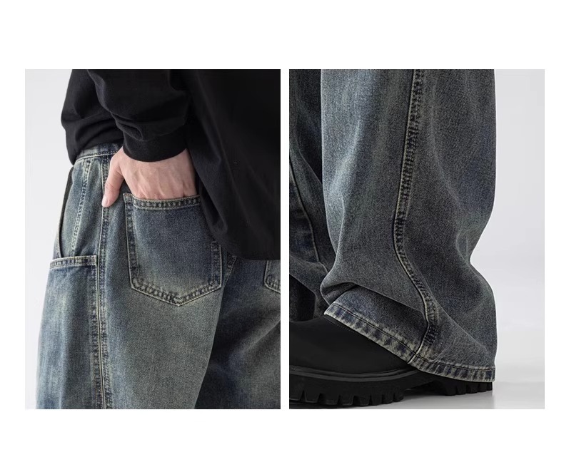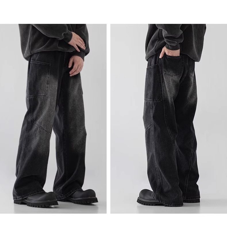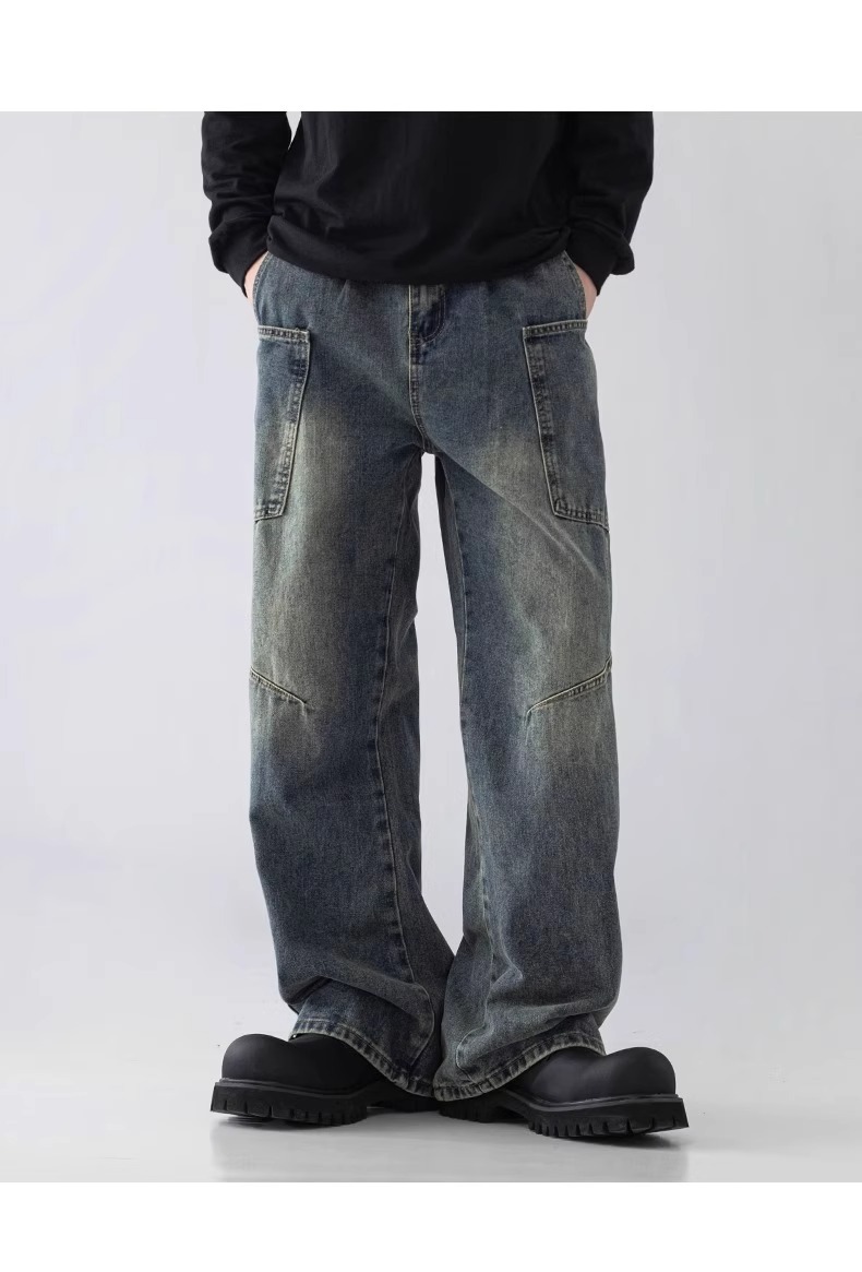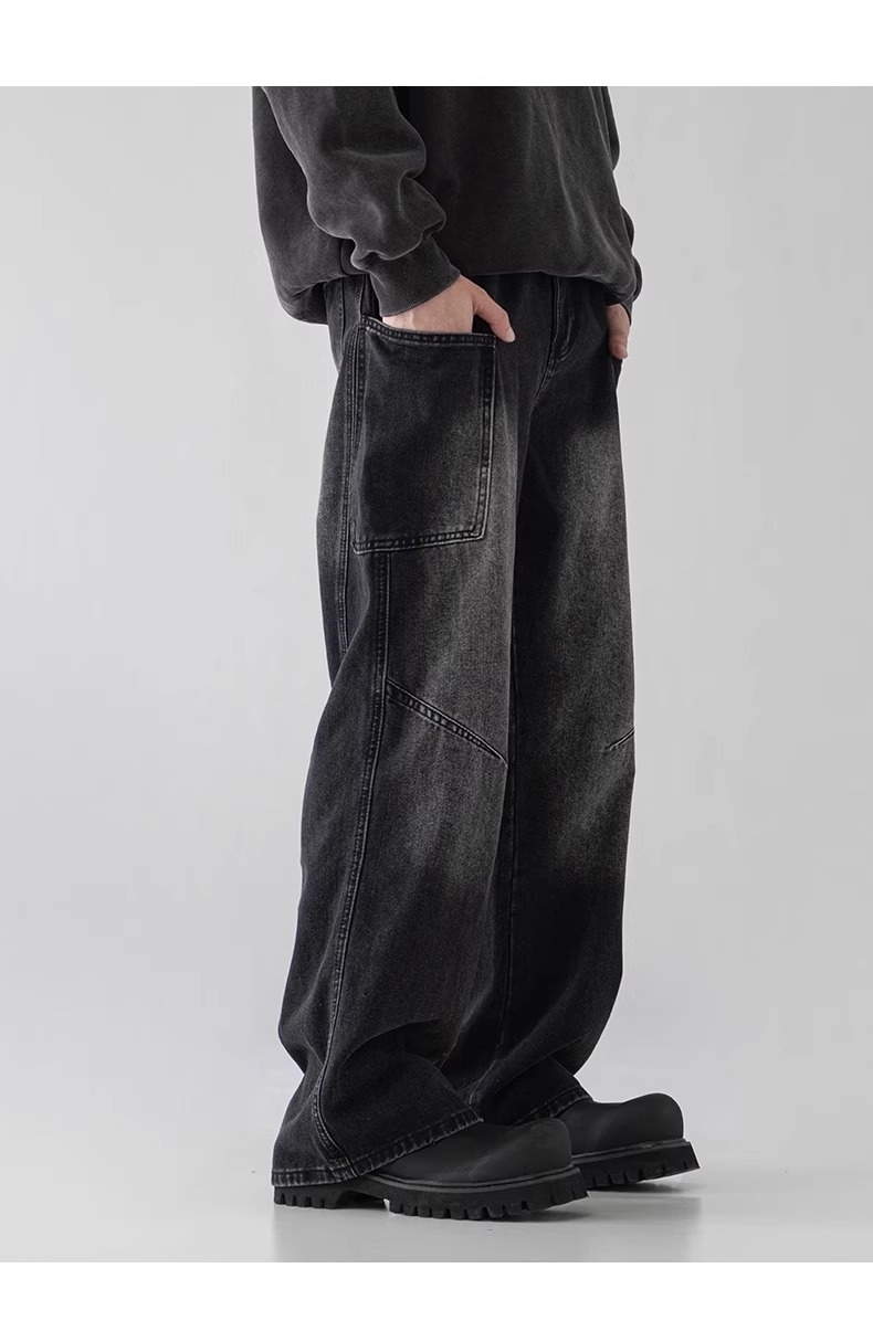 아메리칸 포켓 워크 청바지 남성용 스트레이트 루즈 와이드 레그 워싱 레트로 팬츠 트렌디하고 다재다능한 캐주얼 바지스토어 가기