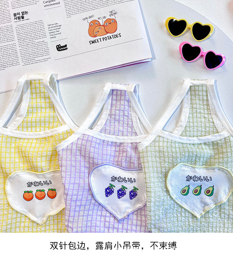 강아지 옷 격자 무늬 캐미솔 애완 동물 의류 테디 비숑 포메라니안 작은 개 고양이 여름 자외선 차단 의류스토어 가기