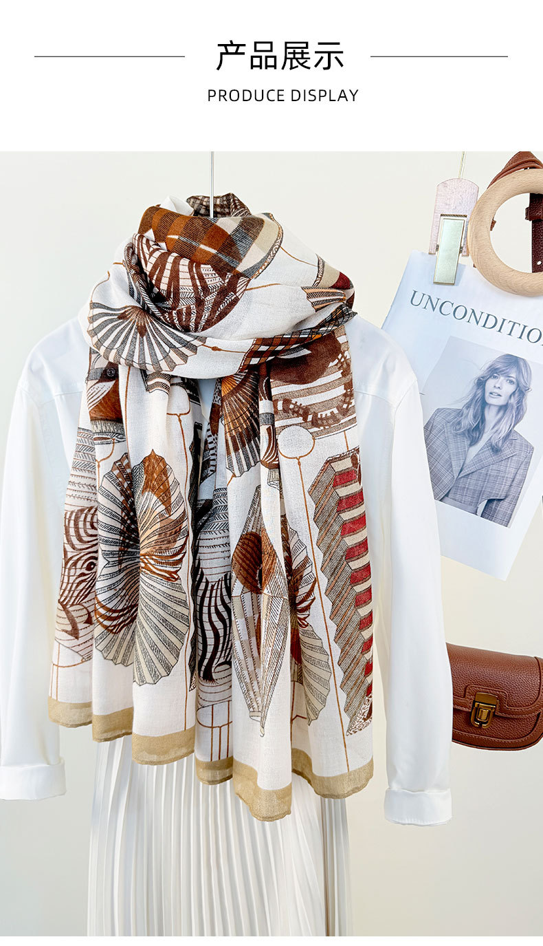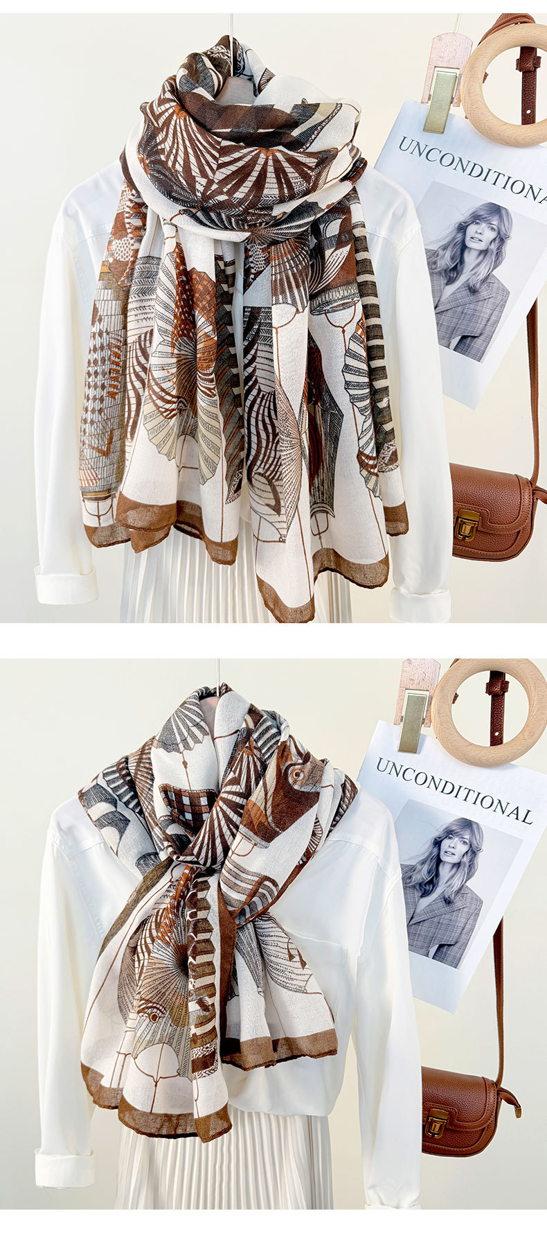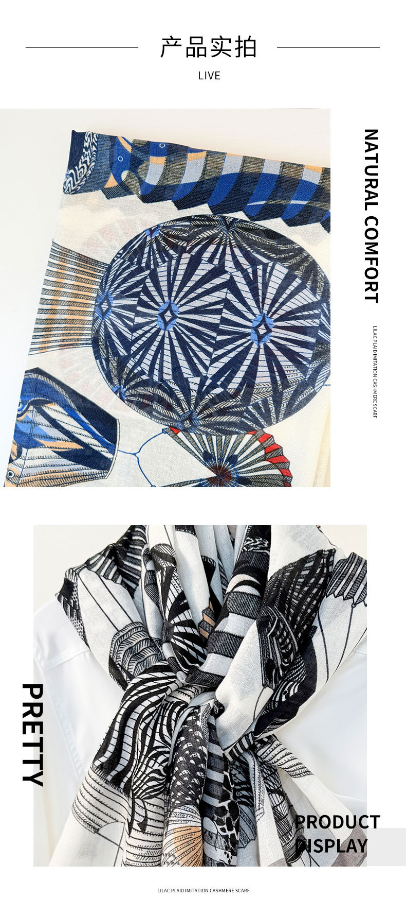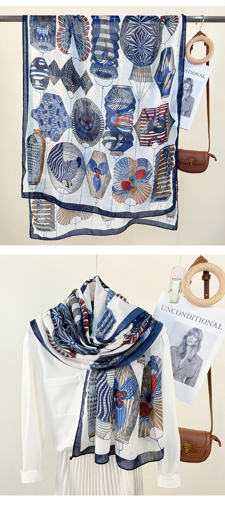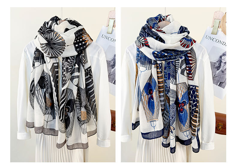 패셔너블한 디자인, 복고풍 틈새 랜턴 프린트 스카프, 고급스럽고 트렌디한 여성 여행 사진 롱 스카프스토어 가기