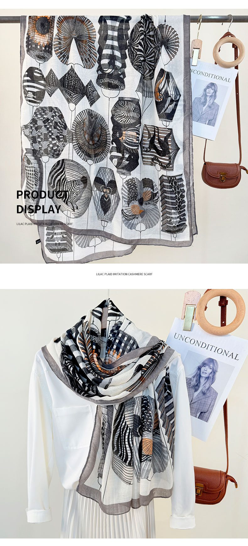 패셔너블한 디자인, 복고풍 틈새 랜턴 프린트 스카프, 고급스럽고 트렌디한 여성 여행 사진 롱 스카프