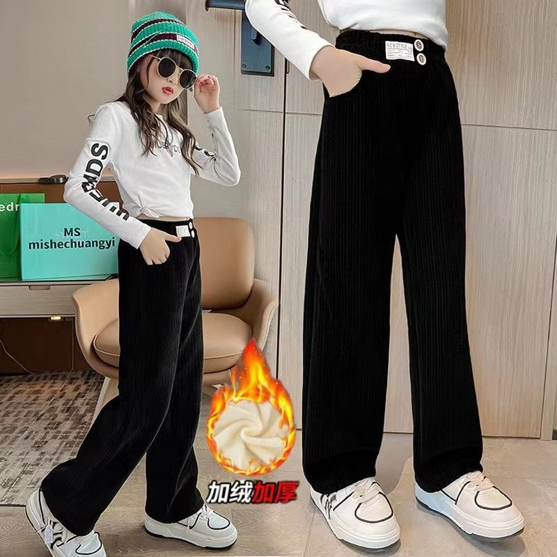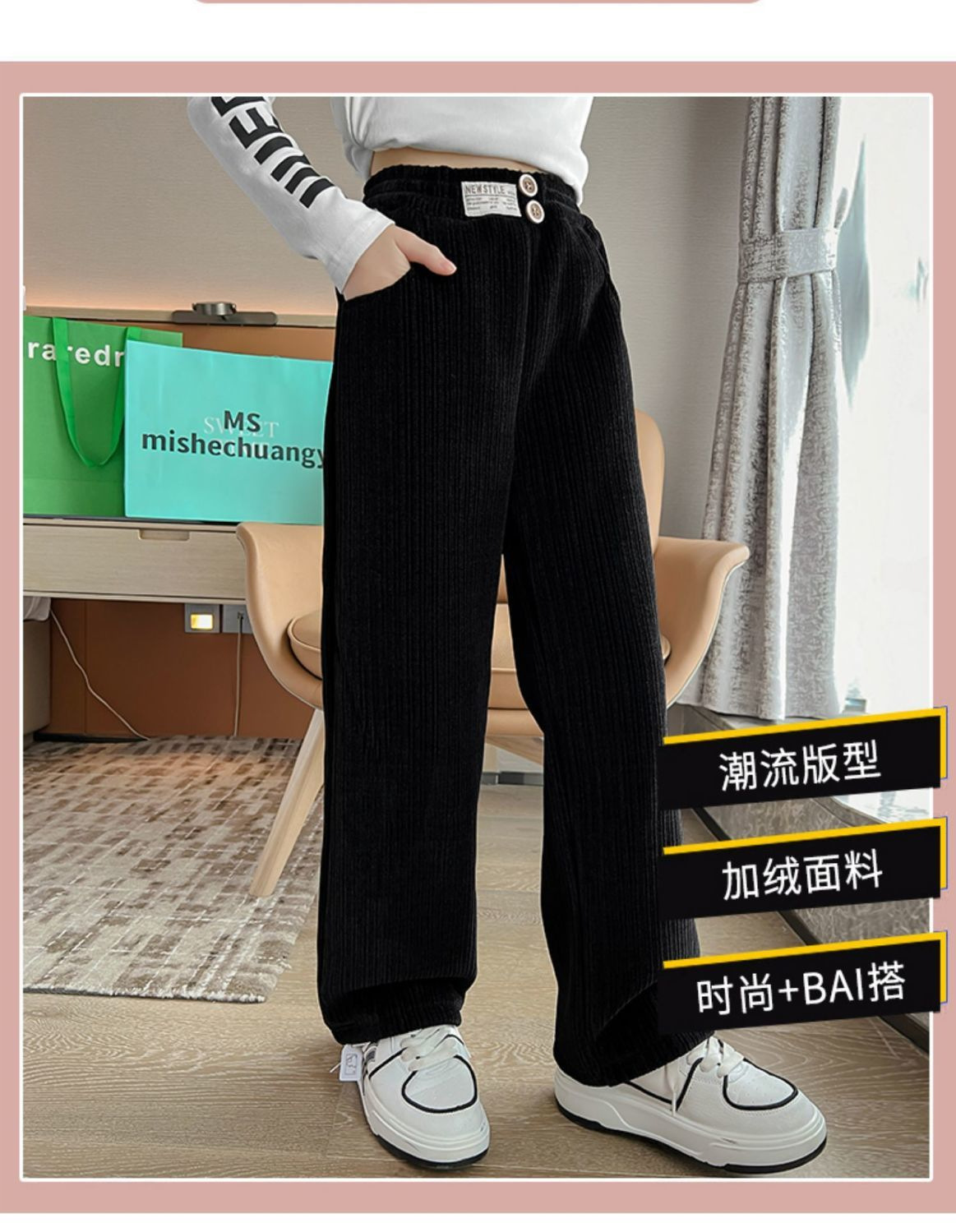 소녀 기모 바지 2024 가을 겨울 새로운 도착 Zhongda 어린이 Chenille 원피스 양털 다리 바지 서양식스토어 가기