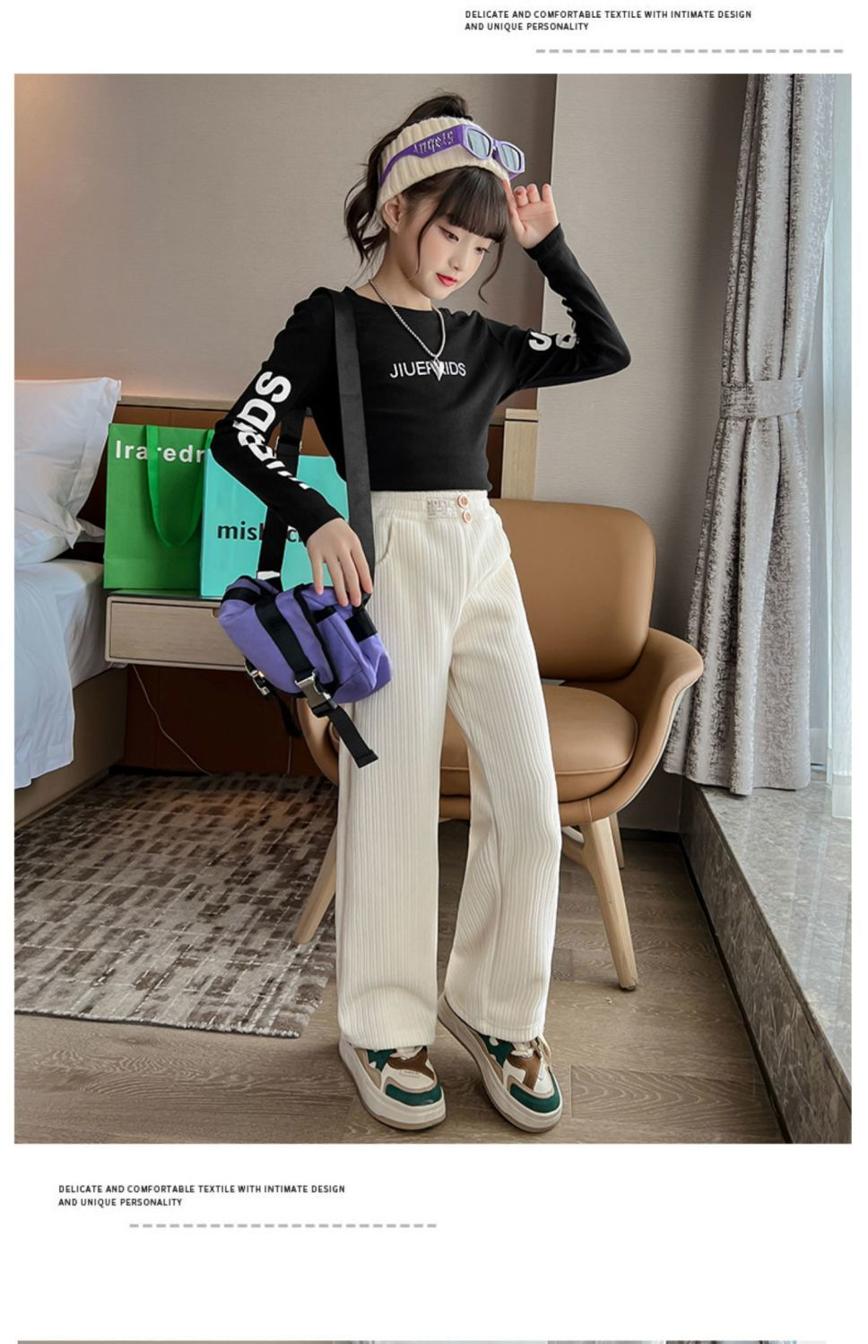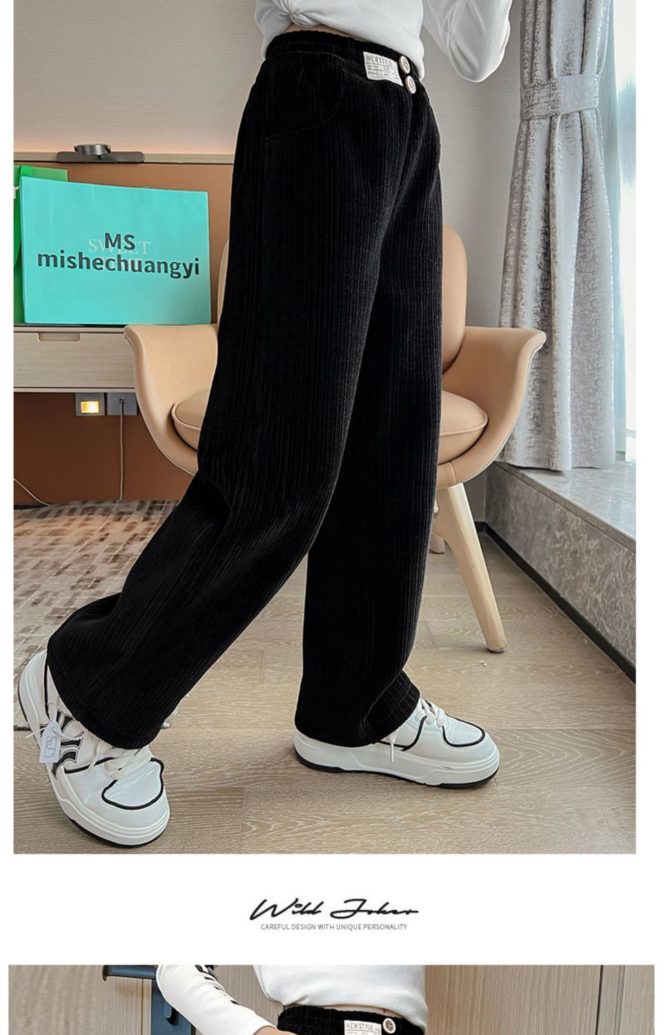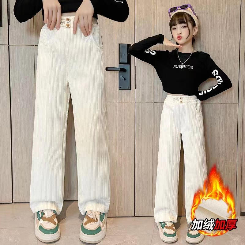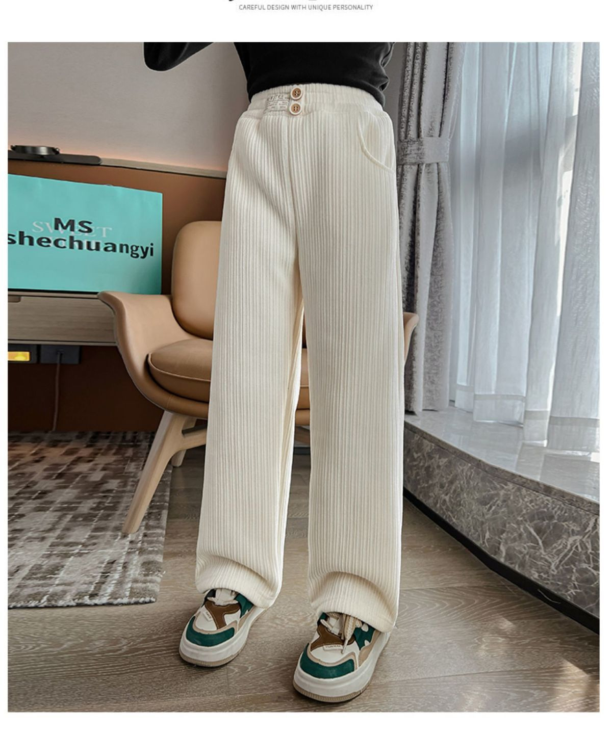 소녀 기모 바지 2024 가을 겨울 새로운 도착 Zhongda 어린이 Chenille 원피스 양털 다리 바지 서양식